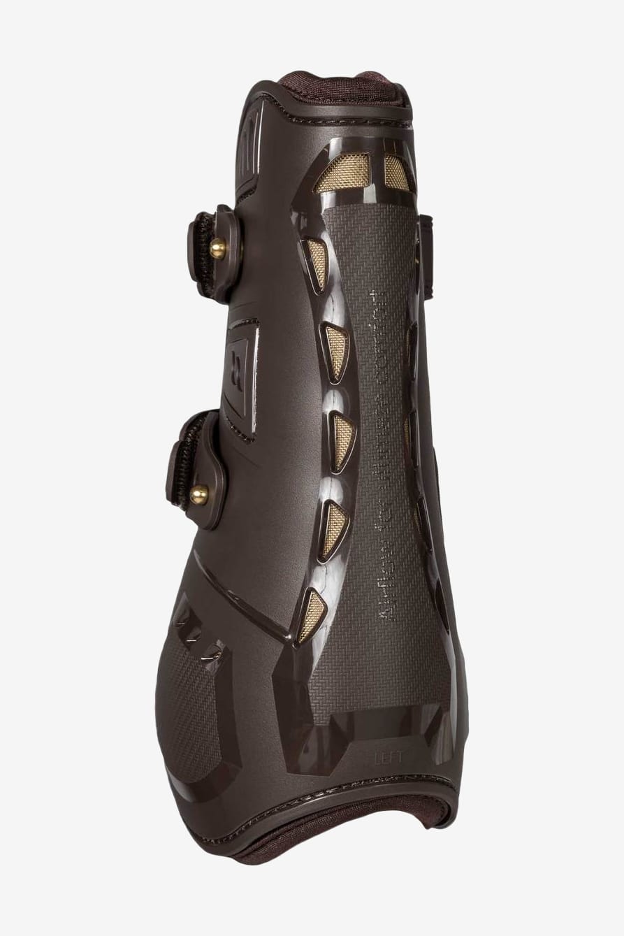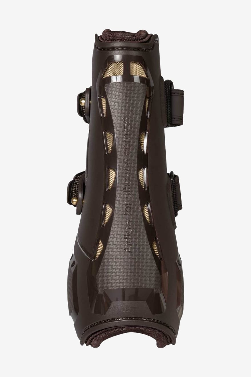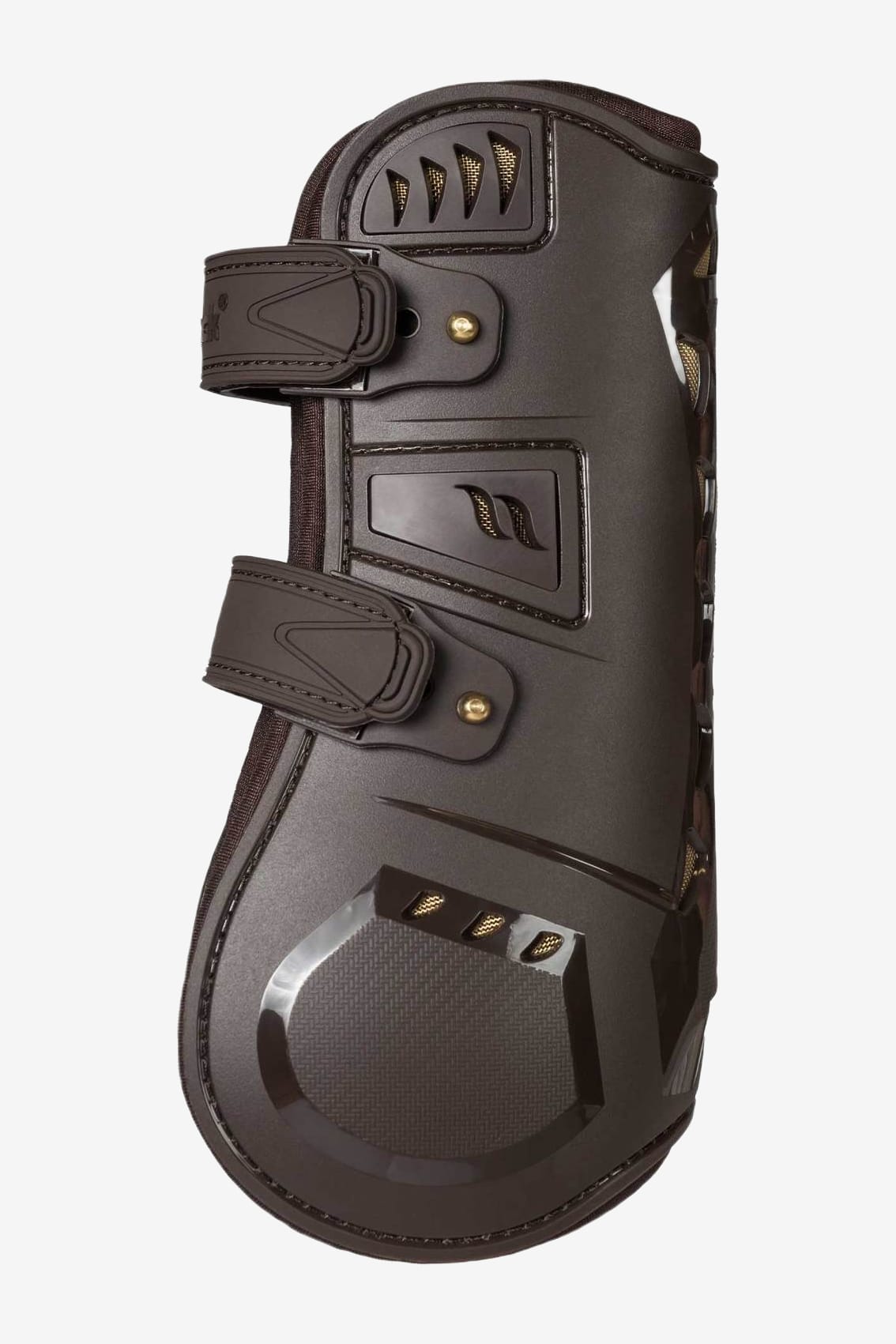 Skydden spänns med kardborreband för en individuell passform. Två solida remmar, utan elasticitet, fördelar trycket och förhindrar att de spänns för hårt kring hästens ben.