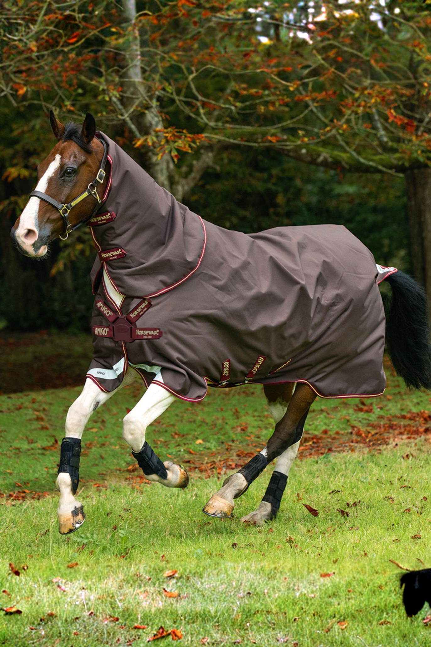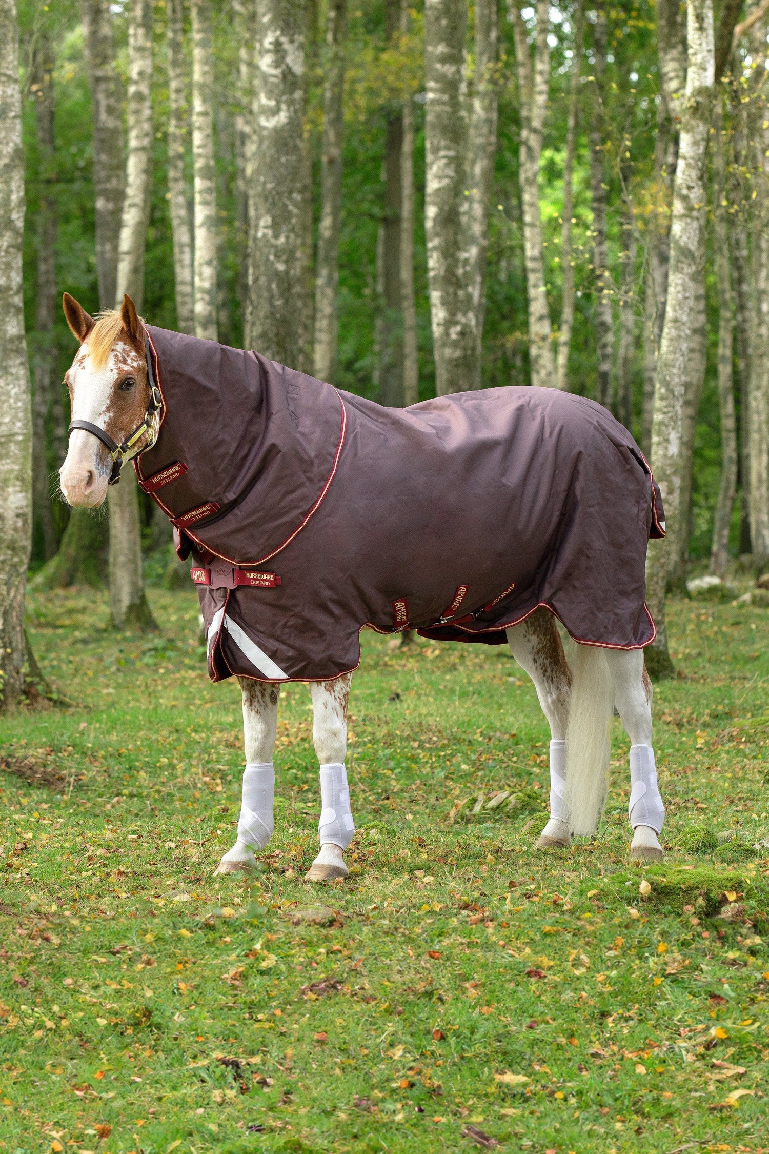 Ett väldigt omtyckt, regntäcke med 1200D yttermaterial med hög vattentäthet och andasfunktion. Kraftigare yttermaterial än Hero-modellerna. Innermaterial av polyester för minimering av skav. Uppskuren vid benen för maximal benrörelsefrihet. 3 maggjordar gör att täcket ligger mer still. Disc Front knäppning fram som ger samma rörelsefrihet och underlättar när hästen sänker halsen som V-front knäppning. Skillnaden är den lätta plastplattan som ger en lättare och flexiblare design där man istället trär igenom två kraftiga kardborrar.