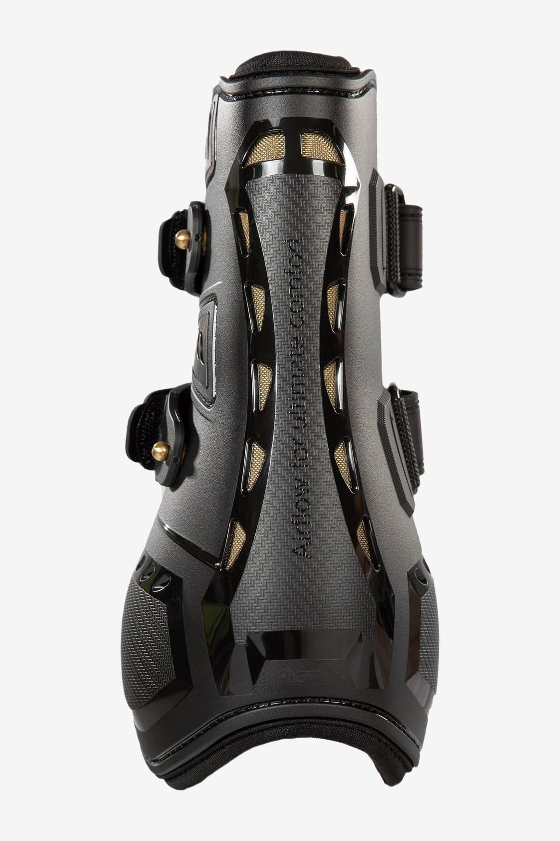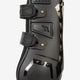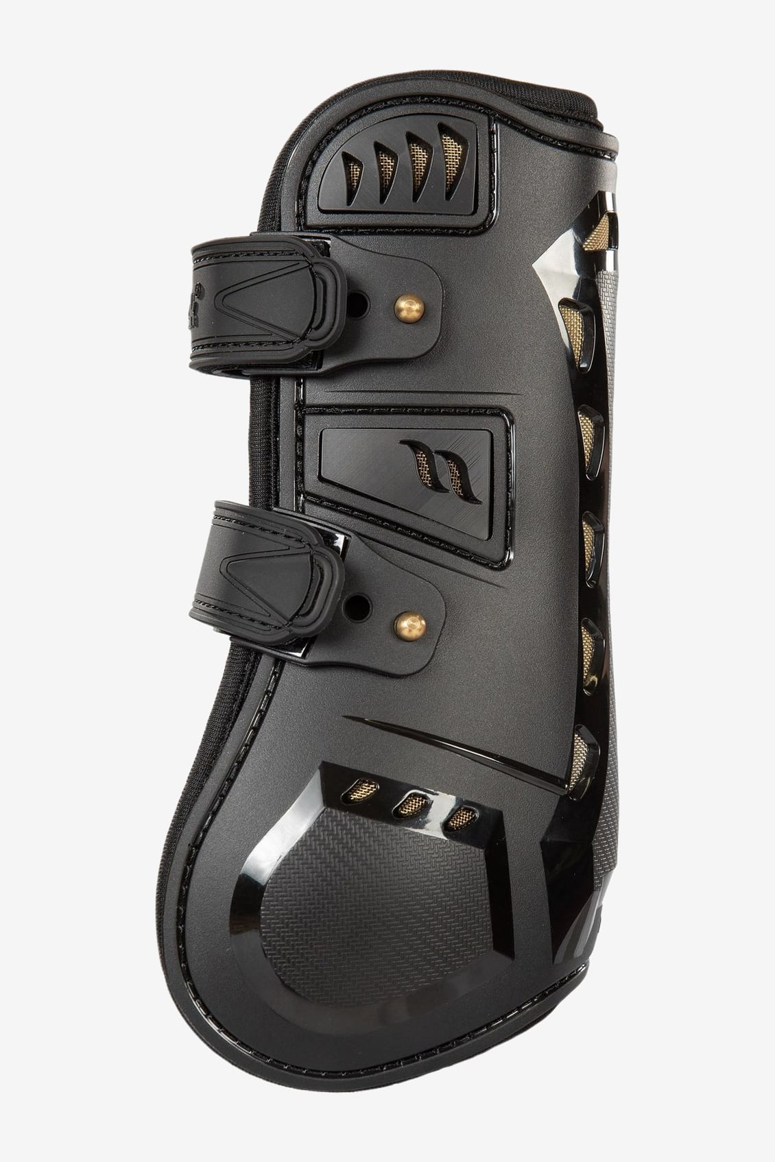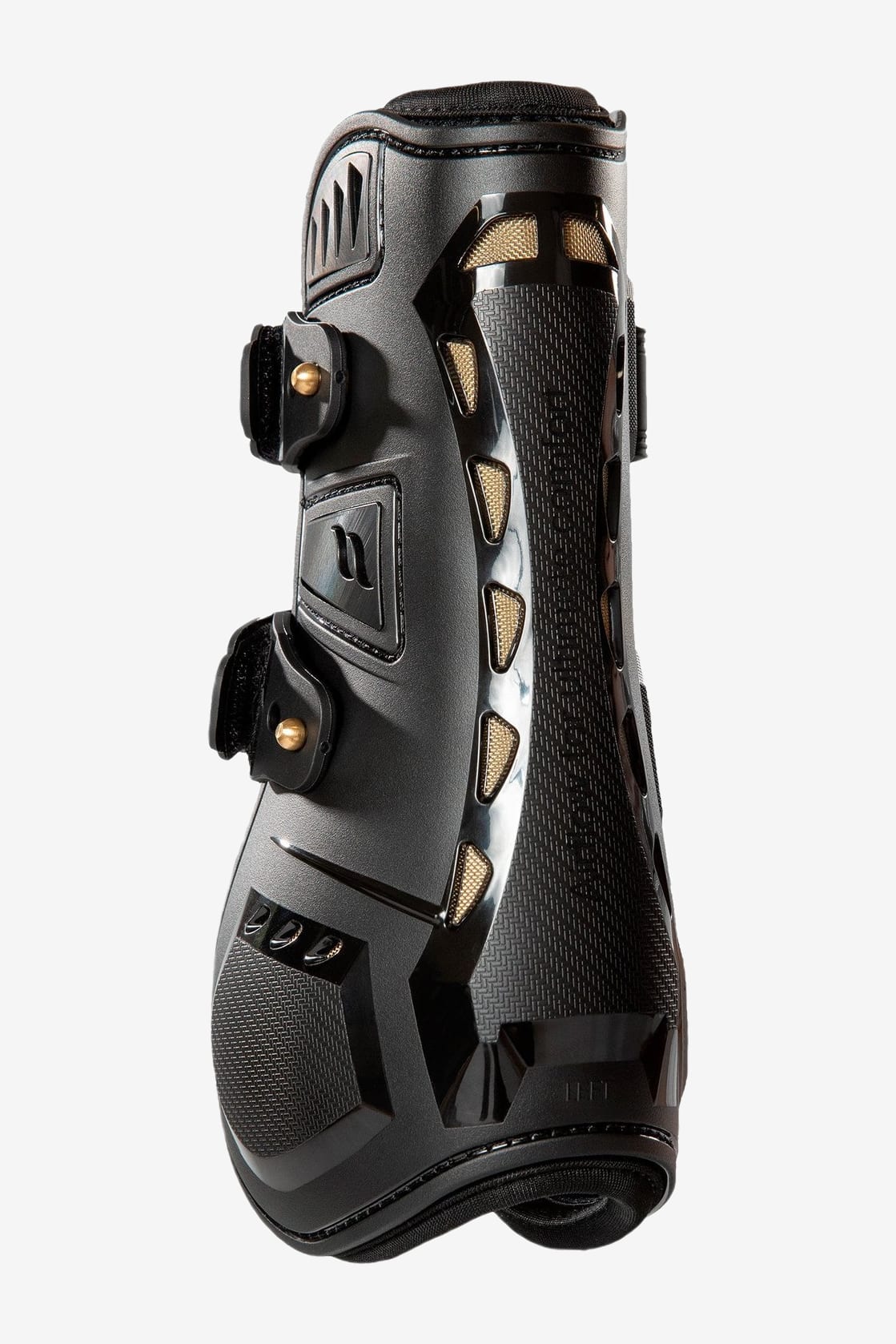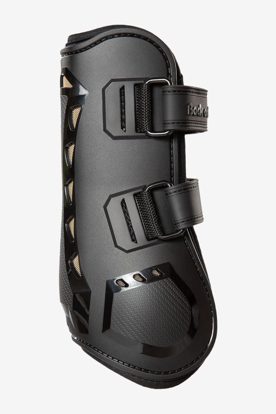 Skydden spänns med kardborreband för en individuell passform. Två solida remmar, utan elasticitet, fördelar trycket och förhindrar att de spänns för hårt kring hästens ben.