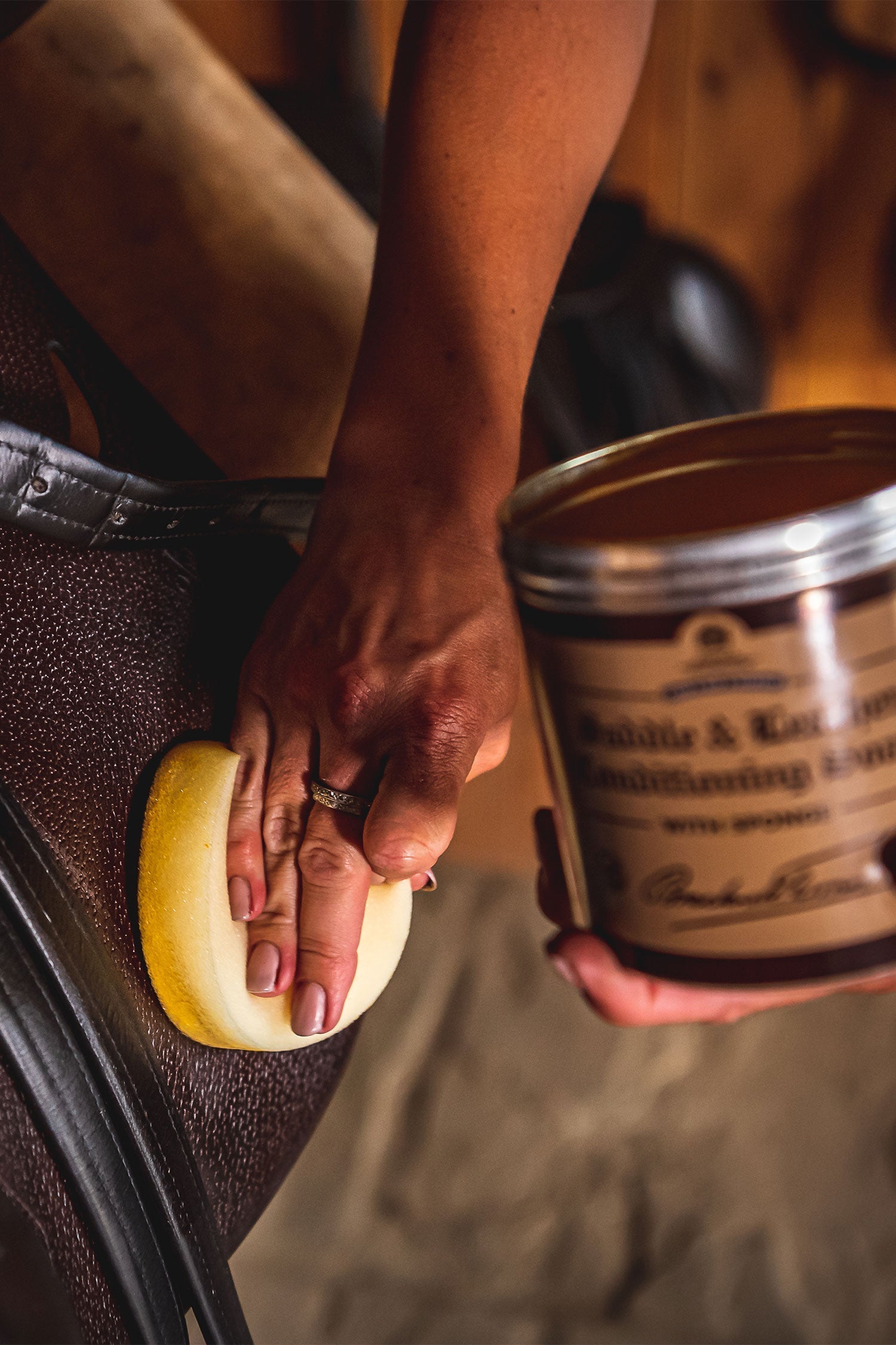 Brecknell Turner Sadeltvål/Balsam är en beprövad mjukgörande rengöring för super matt yta av läder. Den är perfekt för att rengöra och vårda ditt läder.