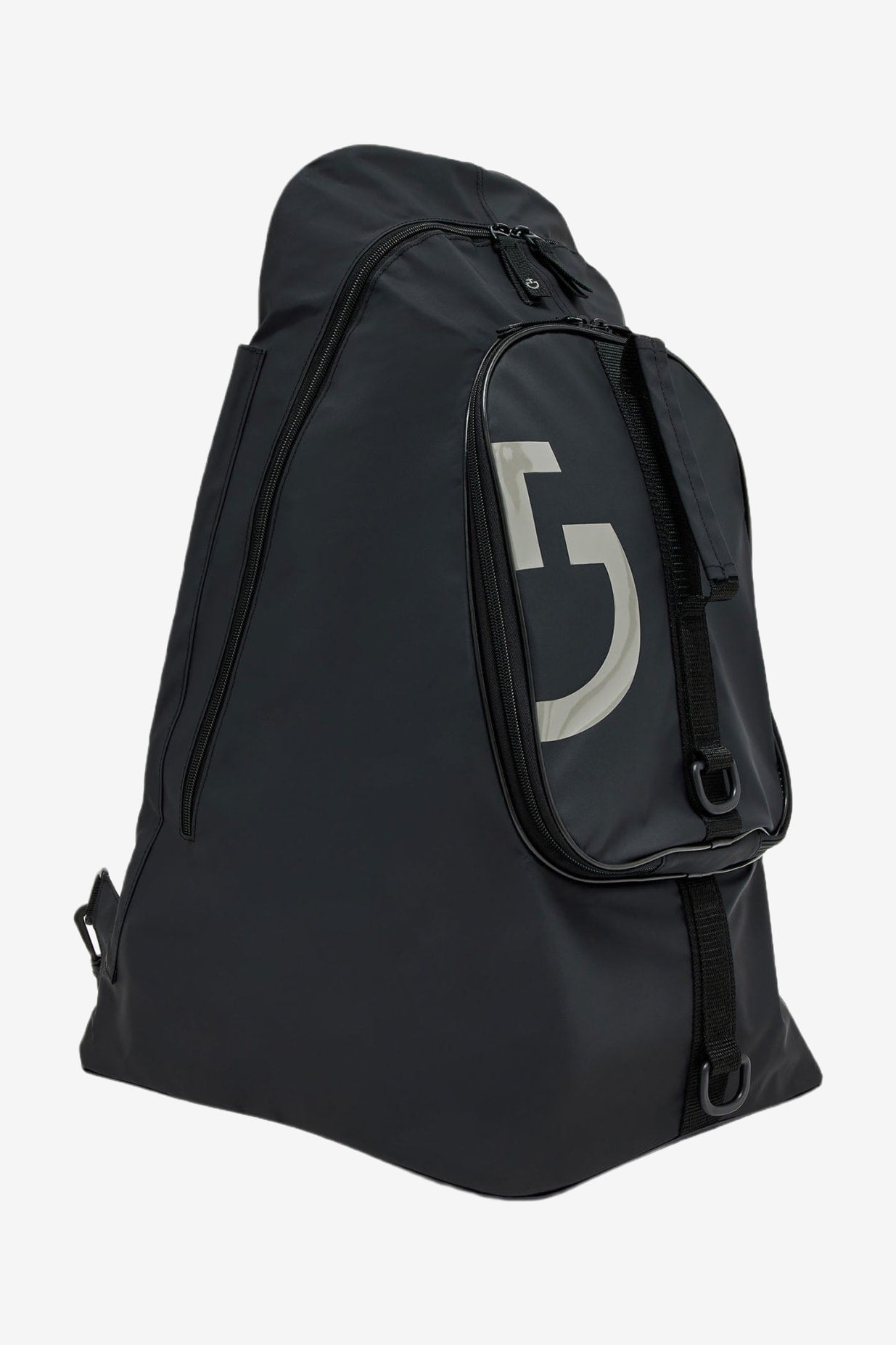 Denna ryggsäck är designad för ryttarens behov. Den har paktiska fack för förvaring av dina tillbehör samt ett främre fäste för hjälmen. Den breda innerfickan inkluderar ett laptopfack. Den yttre beläggningen är gjord av vattentät nylon, medan ryggsäckens botten är vattenavvisande. Perfekta ryggsäcken som håller alla dina tillhörigheter skyddade och praktiskt samlat i denna rymliga modell från Cavalleria Toscana.