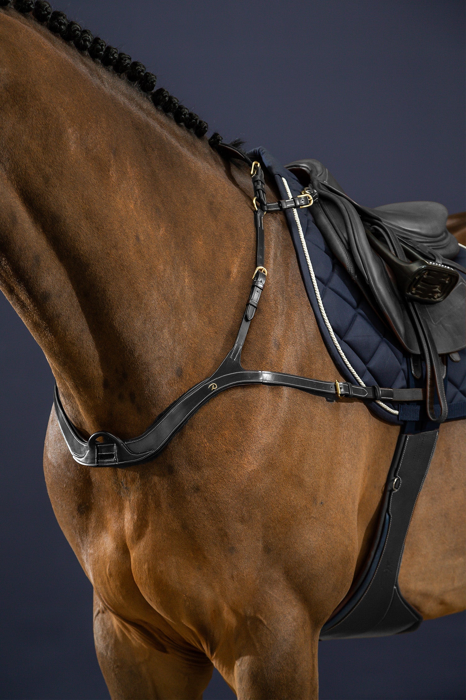 Anatomisk brösta 5-punkts, Dyón Collection från Dyón. Mycket trevlig 5-punkts-brösta med perfekt passform. Tillverkat i fint spanskt läder med mässingsspännen och vit mönstersöm. Anatomiskt formad för att ge hästen obegränsad rörlighet.