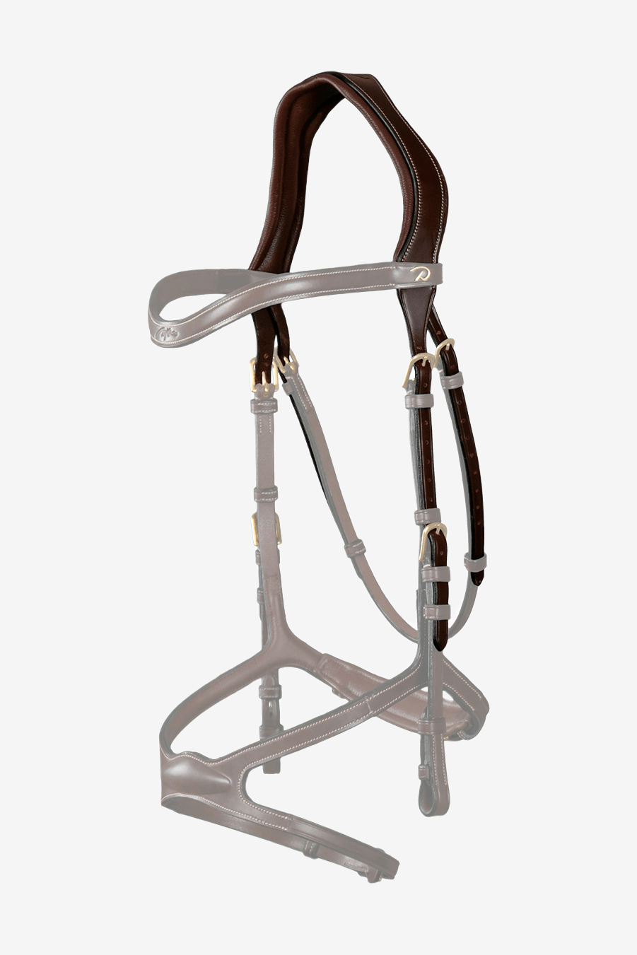 X-fit nackstycke med käkrem i spanskt läder med vita sömmar. Detta är 2021 nyheten med det uppdaterade S-nackstycket.