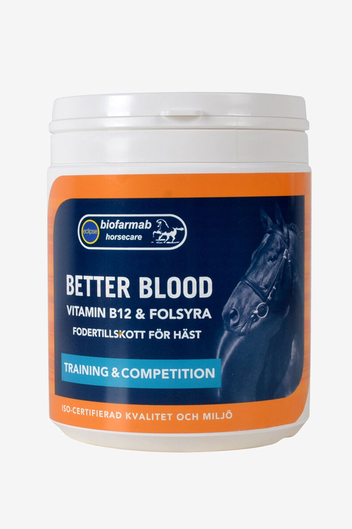 Fodertillskott som används bland annat som förberedelse inför viktiga tävlingar, Better Blood är en kvalitetsprodukt som tillverkas under laboratoriekontroll.