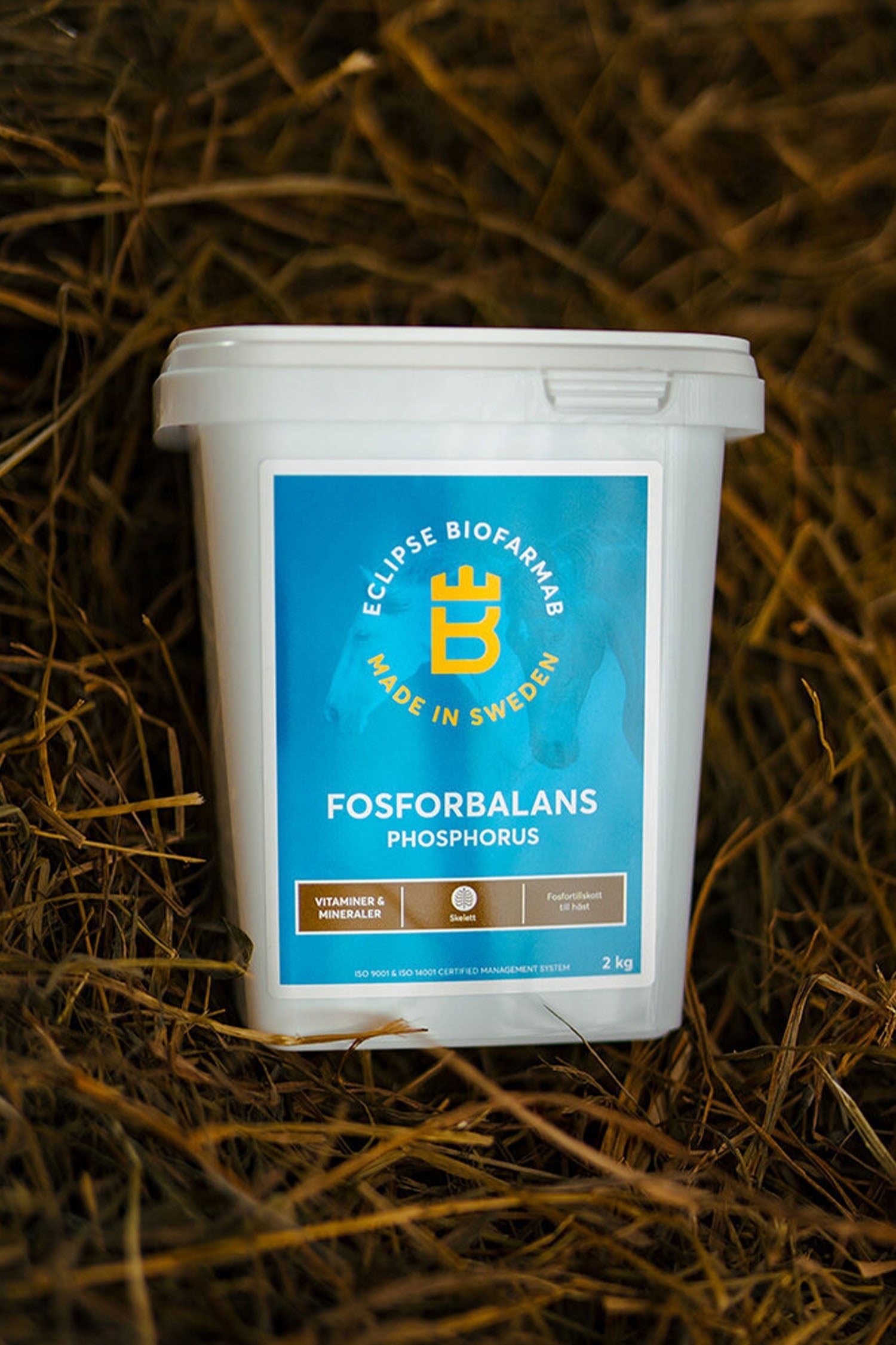 Mängden fosfor som behöver tillföras beror på fodrets kalk- och fosforinnehåll. Fosforbalans används vid foderstater som är underbalanserade på fosfor, t.ex. vid utfodring med kalkrikt stråfoder och/eller små mängder havre. Vid foderstater som är överbalanserade på fosfor, t ex kalkfattigt hö och/eller stora mängder havre, rekommenderas Eclipse Biofarmabs Foderkrita.