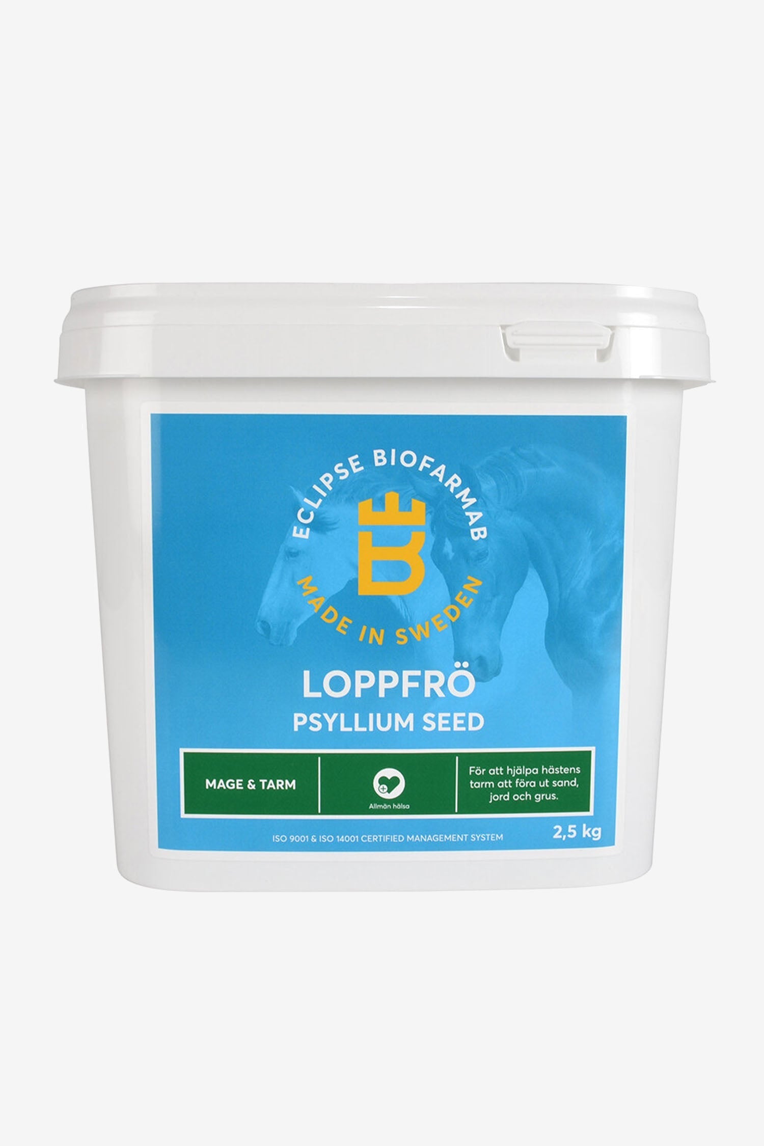 Eclipse Biofarmabs höga kvalitetskrav har resulterat i att vi valt att använda oss av hela loppfrön i vår produkt eftersom de har en bättre slembildande förmåga och en mycket längre hållbarhet i stallets varierande klimat. En del hästar är kräsna och kan tycka att loppfröna smakar och luktar lite konstigt. För att tillmötesgå dessa hästar har Eclipse Biofarmab också lanserat Loppfrö med äppelsmak. Dessa loppfrön innehåller ett äppelextrakt för att öka smakligheten utan att tillsätta onödigt socker. Eclipse Biofarmab strävar alltid efter att tillföra så lite utfyllnad och socker som möjligt i våra produkter.