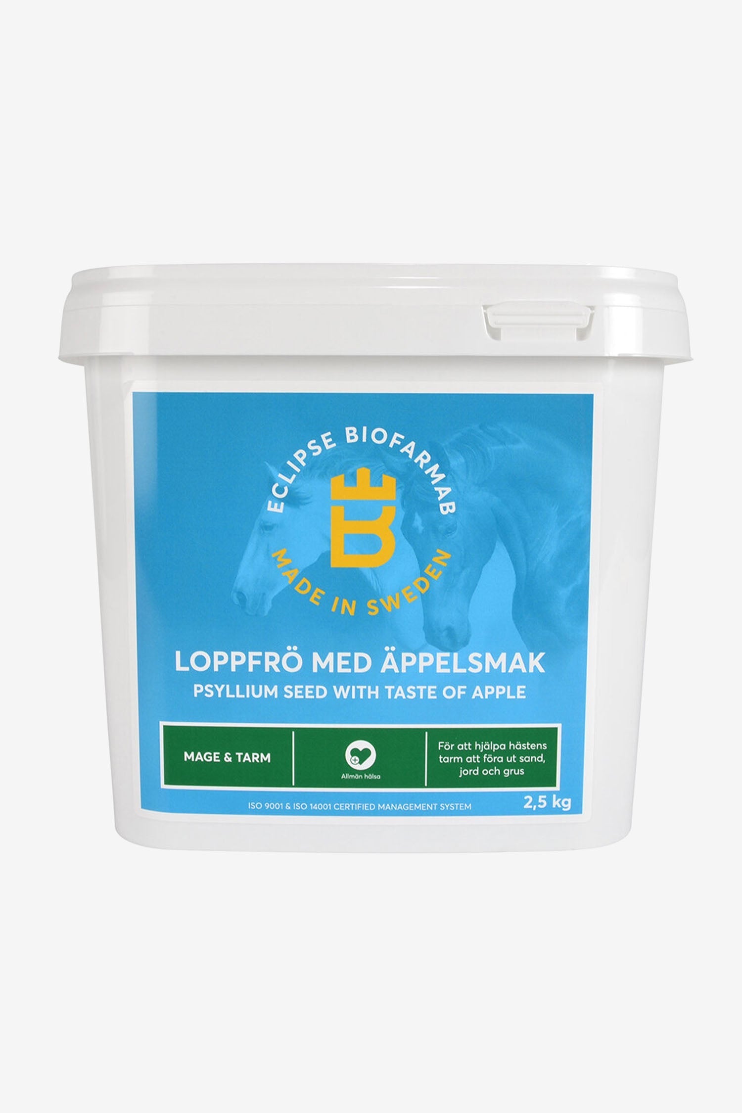 Eclipse Biofarmabs höga kvalitetskrav har resulterat i att vi valt att använda oss av hela loppfrön i vår produkt eftersom de har en bättre slembildande förmåga och en mycket längre hållbarhet i stallets varierande klimat. En del hästar är kräsna och kan tycka att loppfröna smakar och luktar lite konstigt. För att tillmötesgå dessa hästar har Eclipse Biofarmab också lanserat Loppfrö med äppelsmak. Dessa loppfrön innehåller ett äppelextrakt för att öka smakligheten utan att tillsätta onödigt socker. Eclipse Biofarmab strävar alltid efter att tillföra så lite utfyllnad och socker som möjligt i våra produkter.