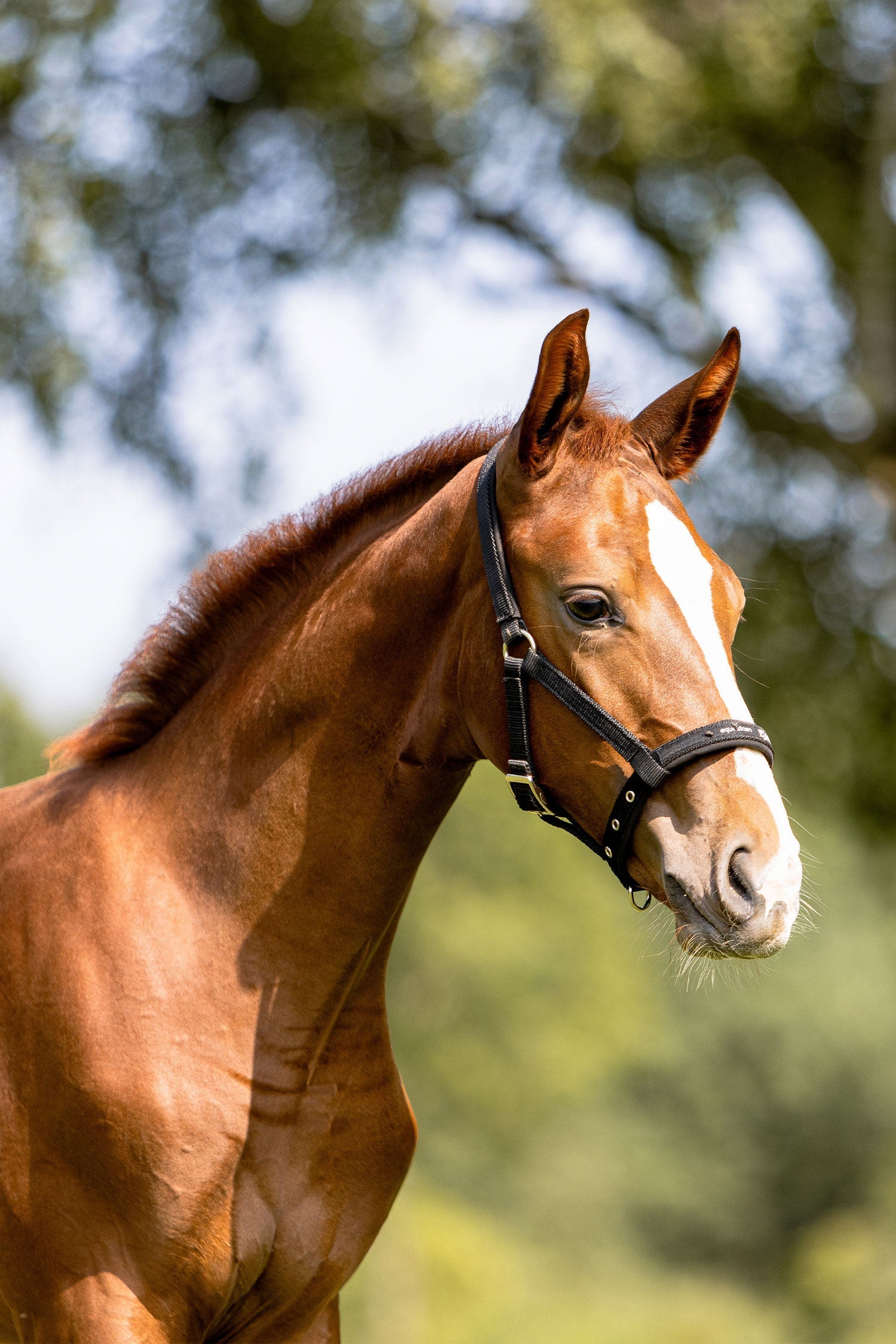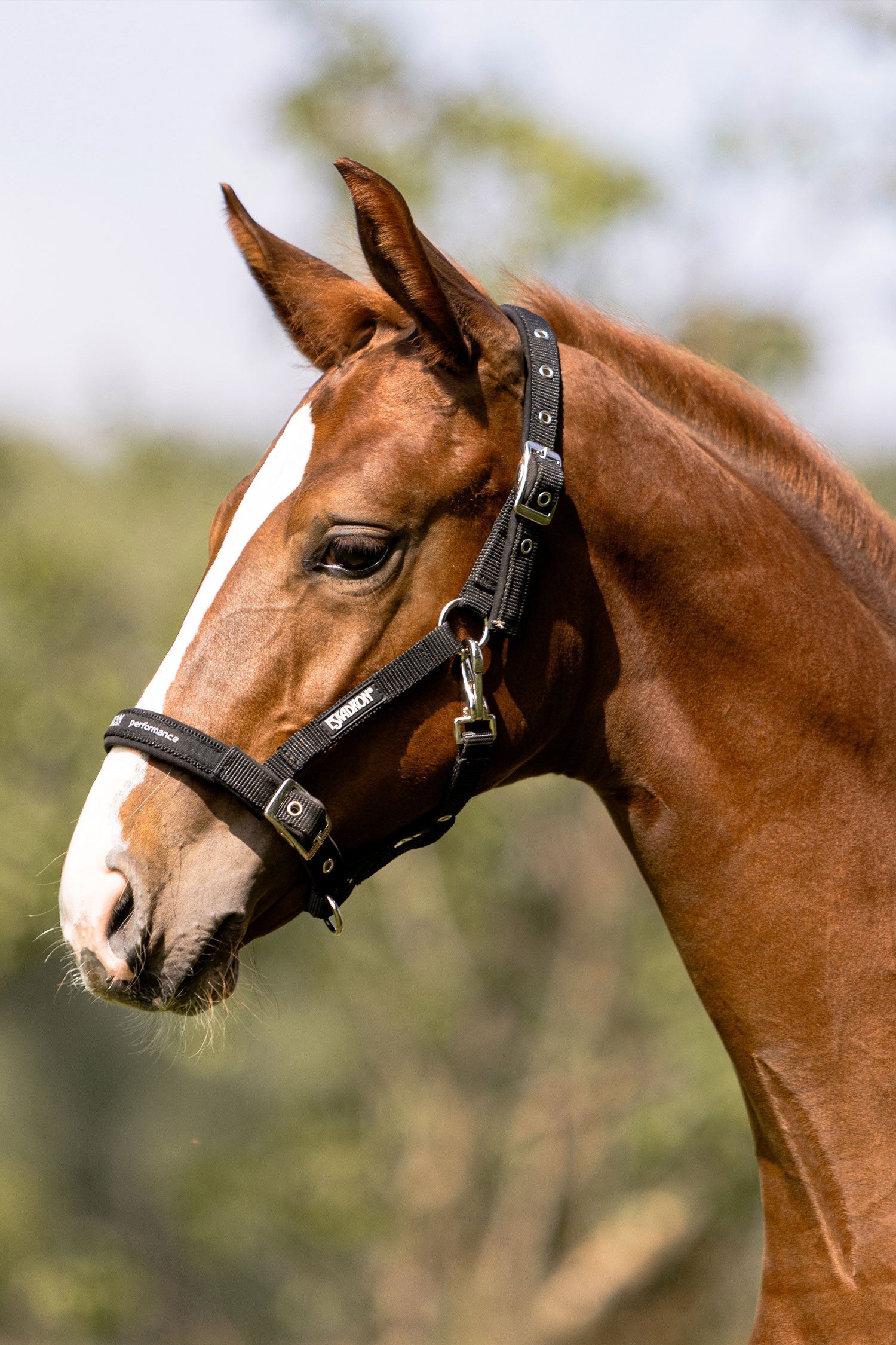 Justerbara spännen som anpassar sig till fölets växande huvud.