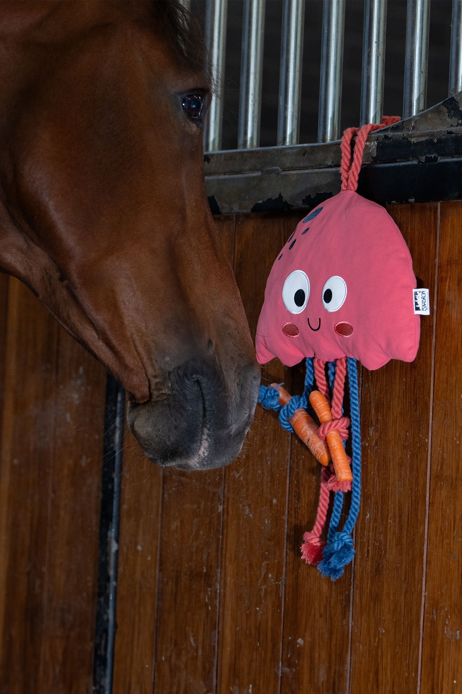 Hästleksak i form av en söt manet från Eskadron, perfekt för att hålla din häst sysselsatt i stallet eller hagen. Leksaken har en manchesteryta, rep att dra i och tugga på, samt en jutefyllning.