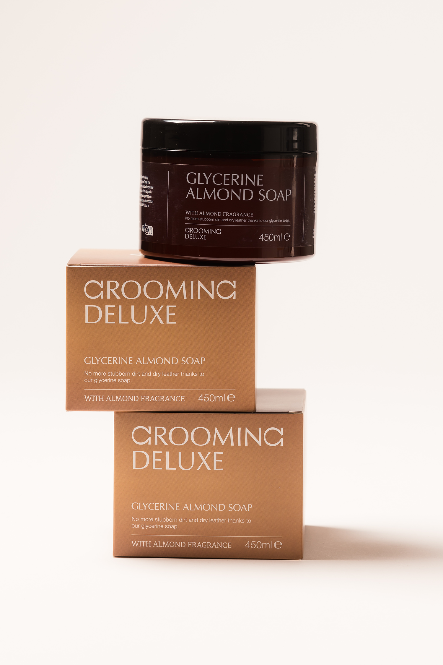 Njut av den härliga mandeldoften när du tar hand om din utrustning, vilket gör varje rengöring till ett nöje. Behandla ditt läder rätt och bevara dess skönhet och livslängd med Grooming Deluxe Glycerin Mandel lädertvål.