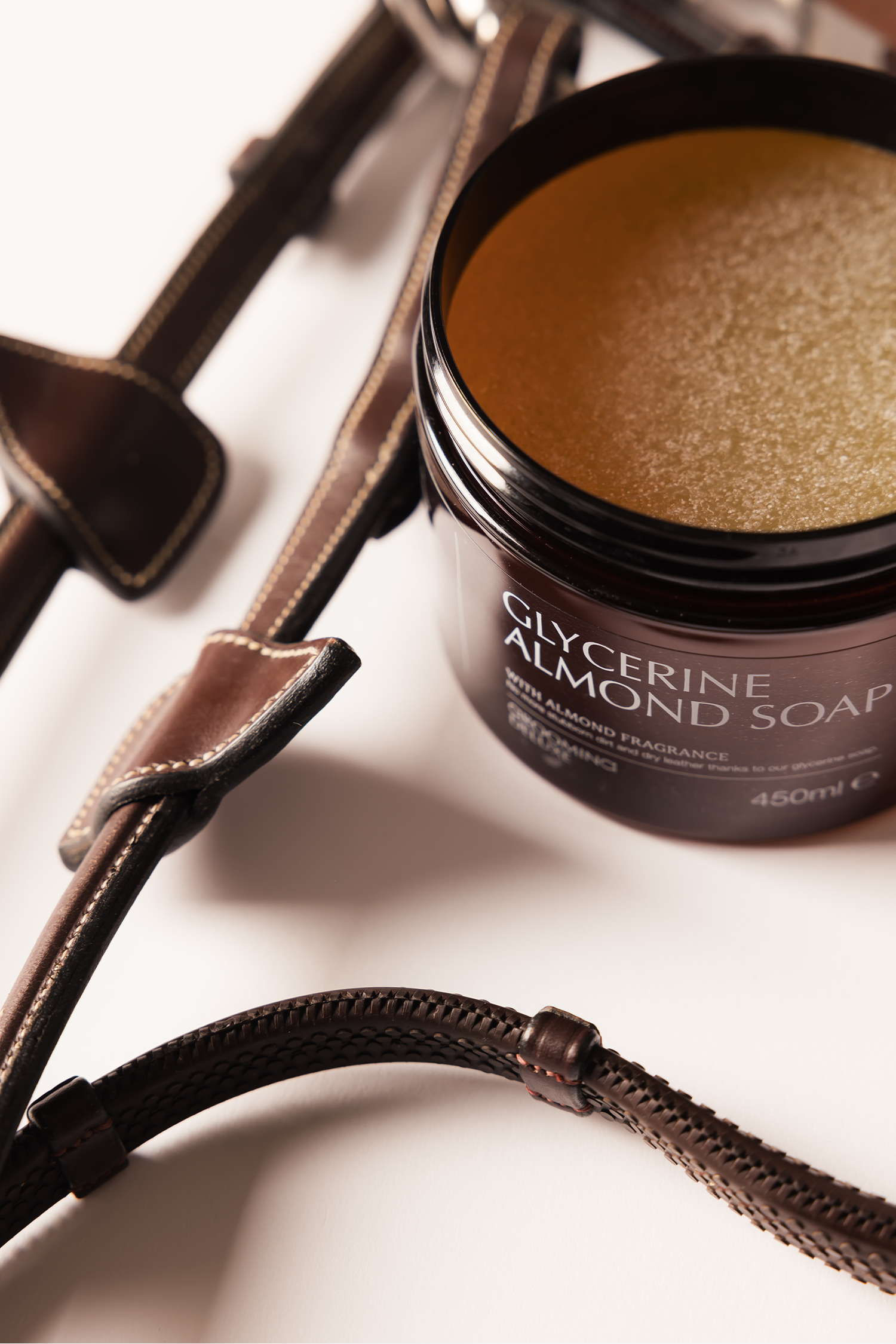 Håll din hästutrustning och dina tillbehör i perfekt skick med vår Glycerin Mandel Lädertvål. Denna högkvalitativa glycerintvål är speciellt utformad för intensiv rengöring och avlägsnar enkelt envis smuts samtidigt som den ger näring åt lädret.
