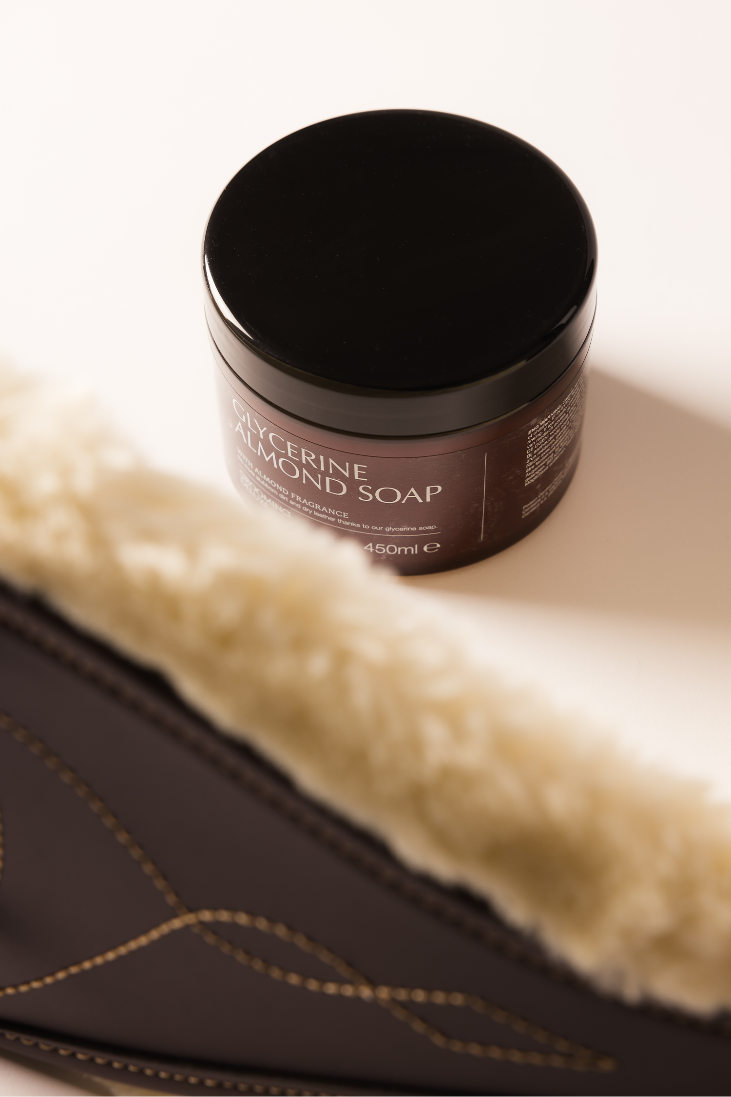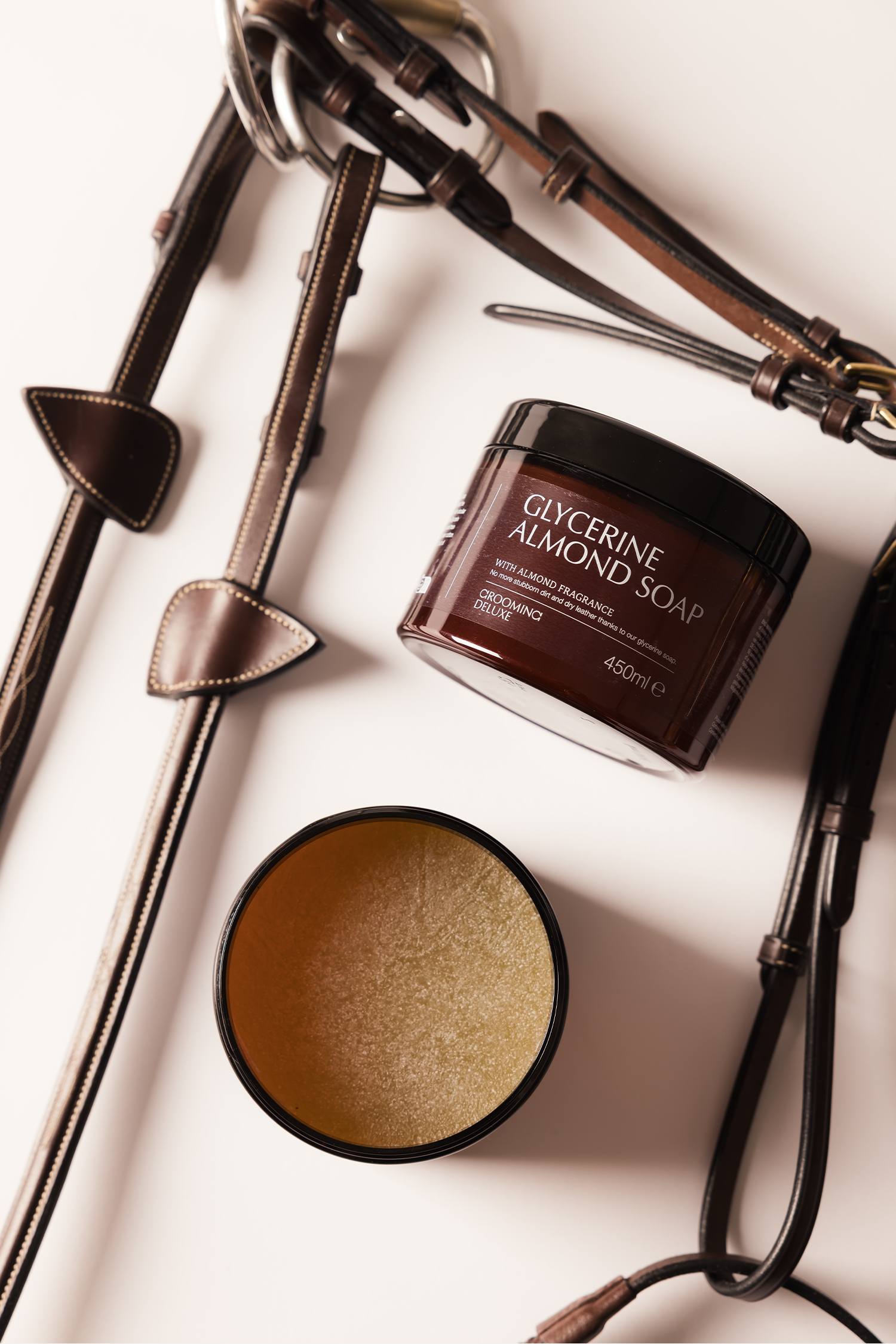 Grooming Deluxe mandel lädertvål är utformad för alla typer av läder och rengör på djupet utan att torka ut materialet, vilket säkerställer att din utrustning förblir smidig och stark. Genom att förlänga livslängden på din hästutrustning är denna tvål ett viktigt tillskott när du putsar dina saker.