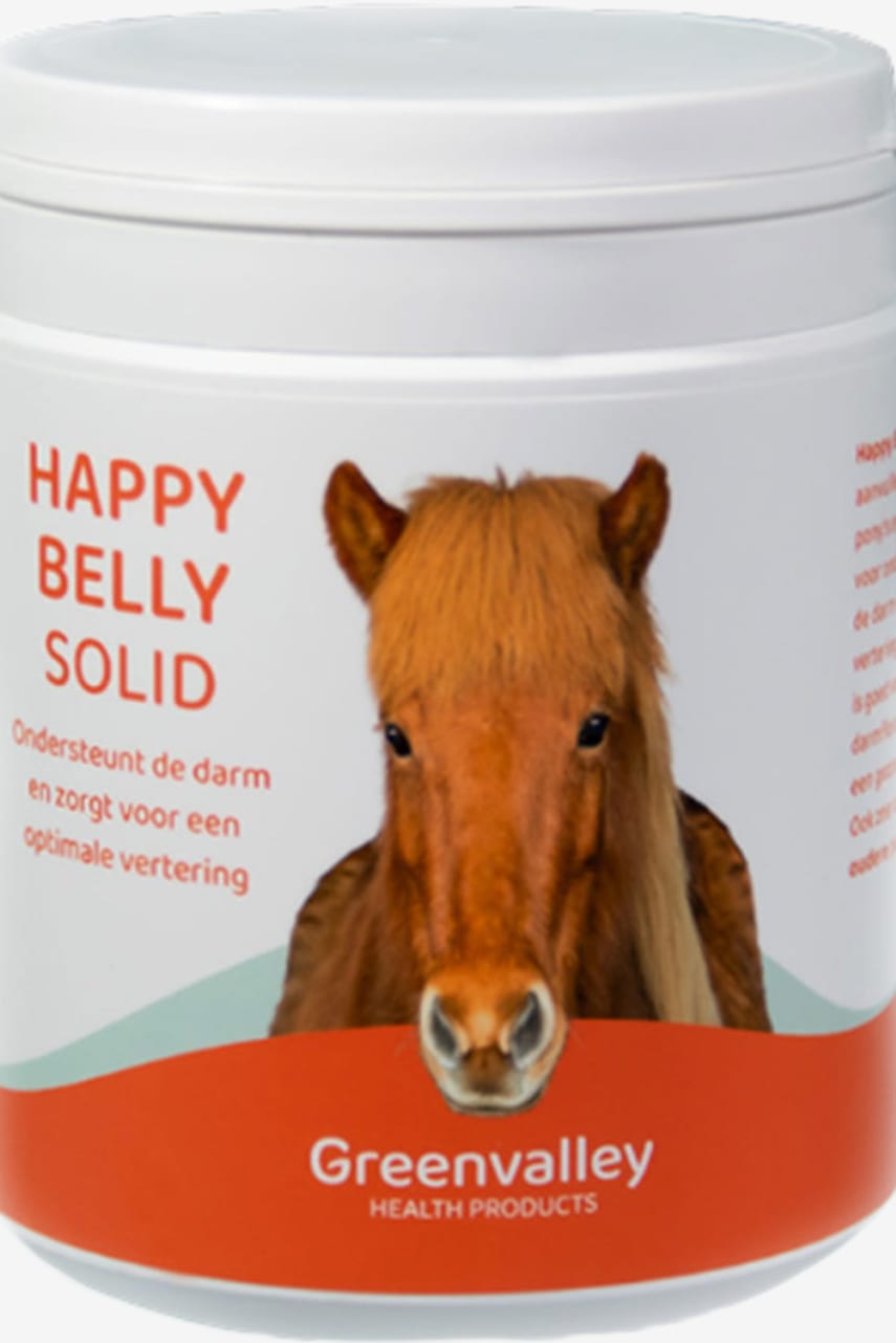 Happy Belly Solid är ett kompletterande foder för hästar och ponnyer. Det ger stöd för tarmen och optimal matsmältning. Happy Belly Solid är bra för en balanserad tarmflora och stödjer frisk hud och päls. Happy Belly Solid innehåller kalciumbutyrat.