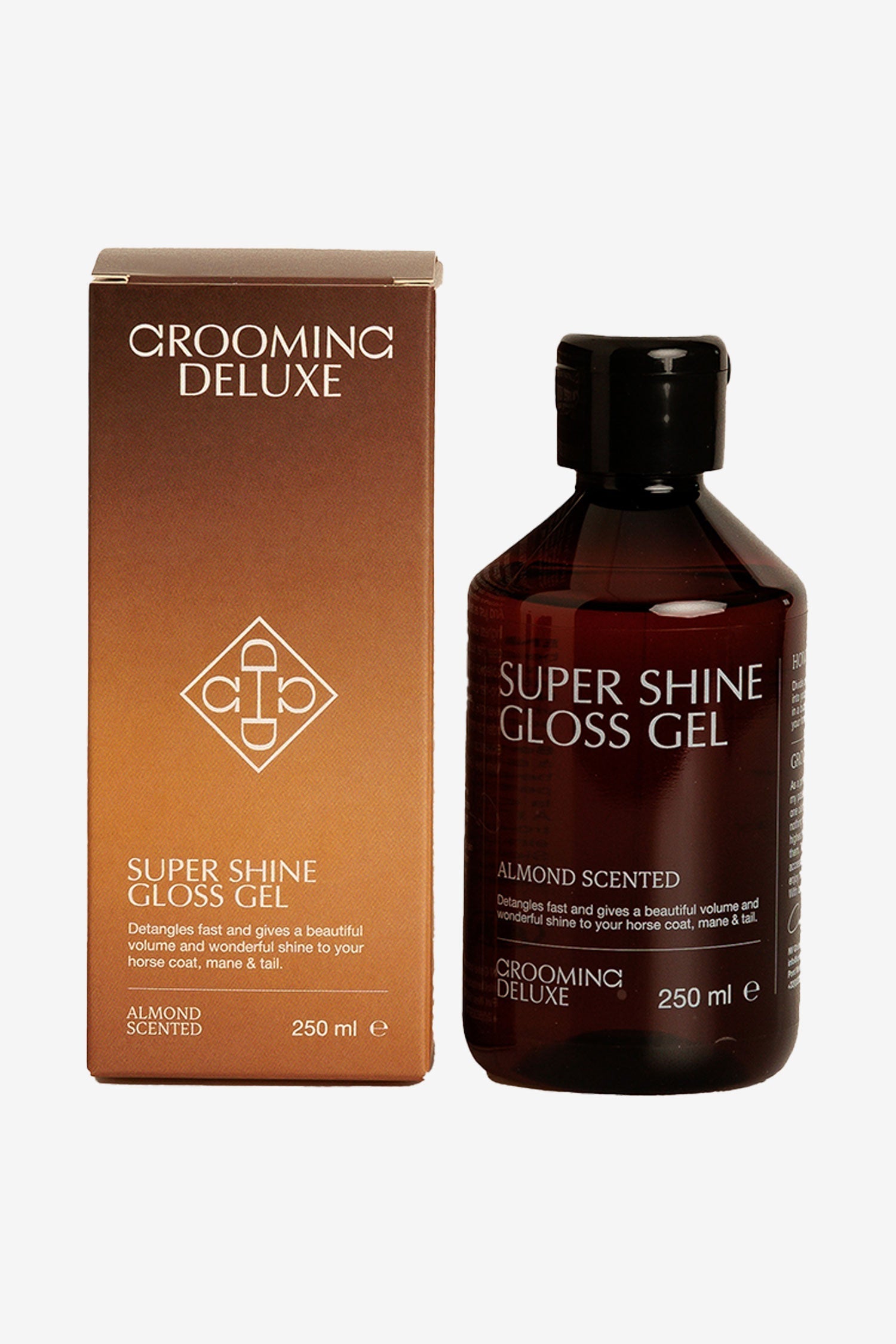 Grooming Deluxe Super Shine Gloss Gel är den ultimata lösningen för en perfekt man och svans, utvecklad för att möta alla behov vid tävling, show eller speciella tillfällen. Denna premiumgel har enastående utredande och vårdande egenskaper som gör håret silkeslent med en fräsch doft av lavendel. Formulan, baserad på en mikroemulsion av vatten och olja, torkar snabbt, stöter bort smuts och urin samt lämnar ingen klibbig eller fet hinna. Upplev enkel grooming med extra volym, fantastisk glans och ett långvarigt resultat som är lätt att kamma och fläta.