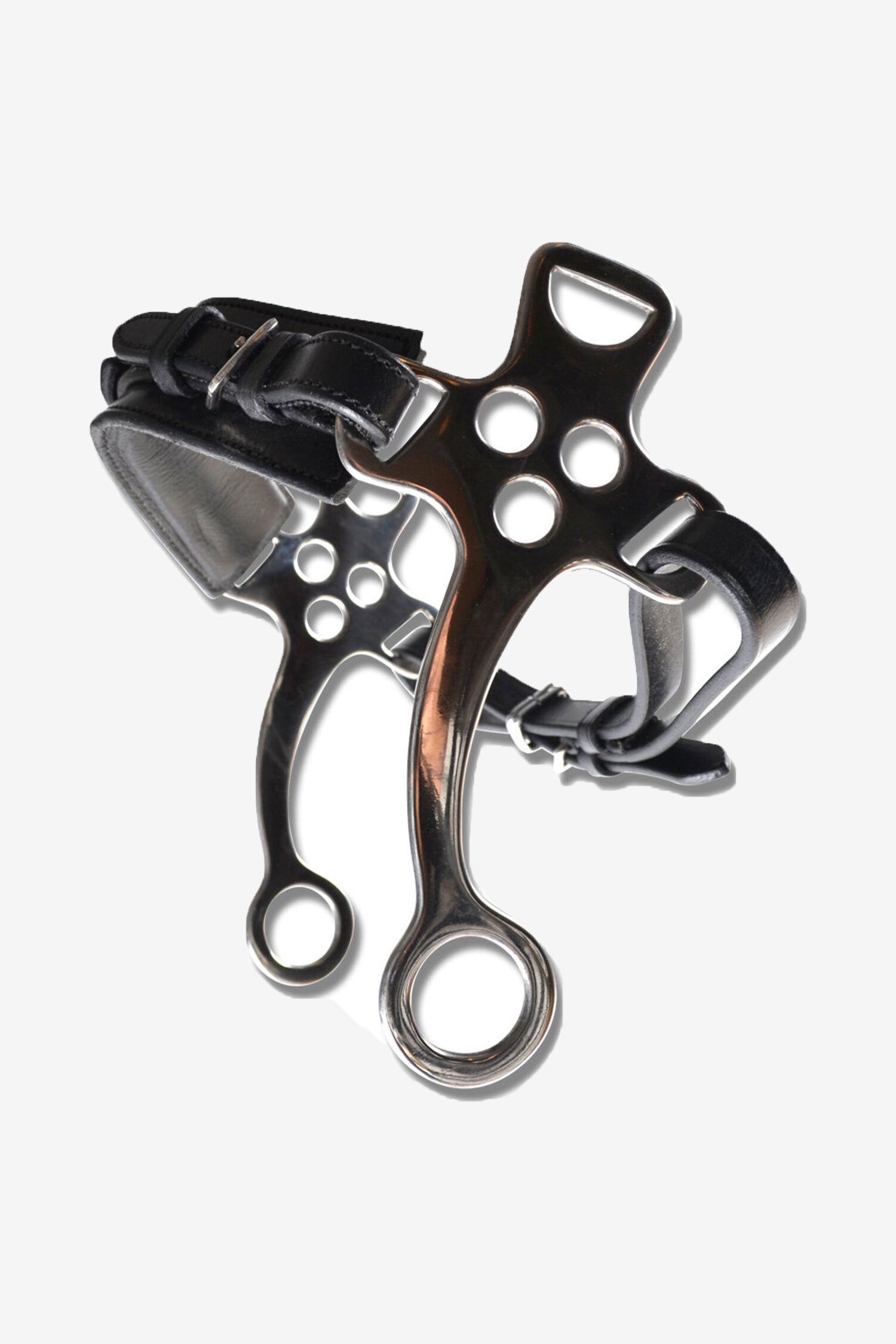Det har stor hävstångseffekt. Används på mycket skarpa hästar eller då hästen inte kan ha bett i munnen.