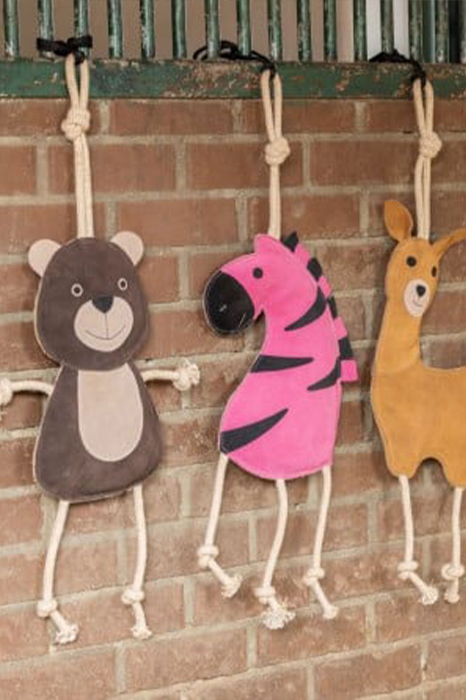 Den platta designen med inbyggda rep uppmuntrar till lek och aktivitet, medan det kraftiga repet gör det enkelt att hänga upp leksaken i boxen.