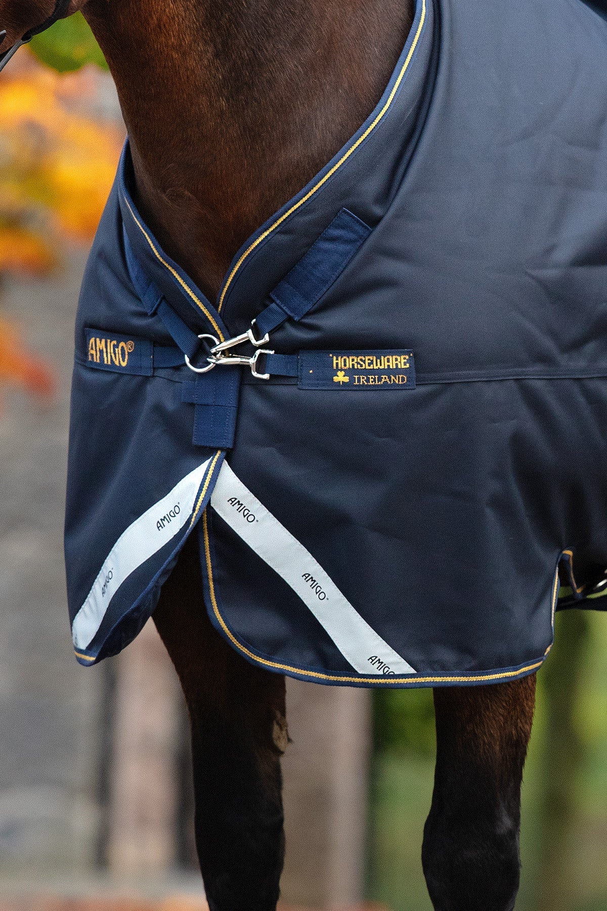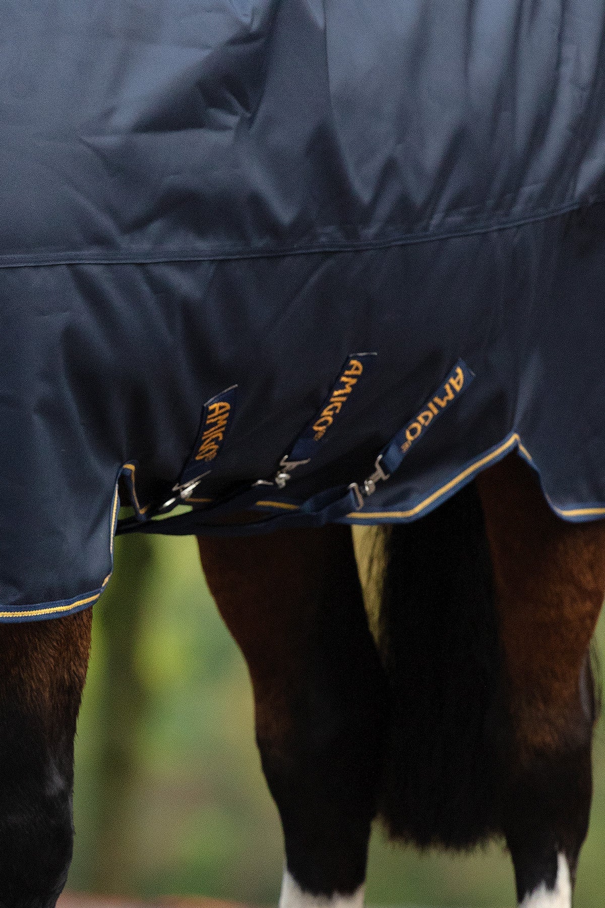 Täcket är generösare i passformen runt halsen och över bogarna för att passa de bredare hästarna. V-knäppning framtill som minskar trycket över skuldrorna och ger en större frihet för hästen att ta ner halsen när den betar.