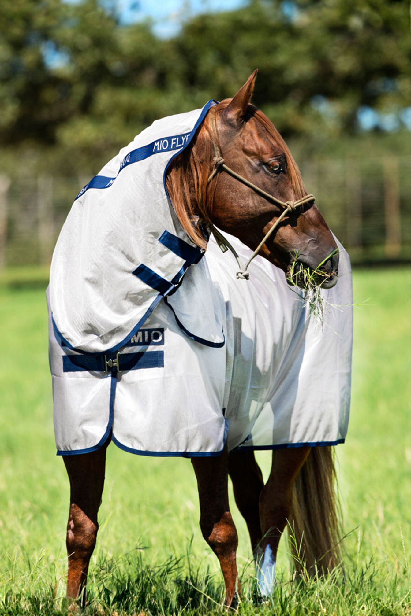Mio Fly Rug Flugtäcke Ponny är ett flugtäcke för ponnyer. Täcket har glansigt foder vid man och bogparti för att motverka skav. Det är tillverkat i mjuk polyester för komfort och funktion. Täcket har även en ventilerande fast hals.