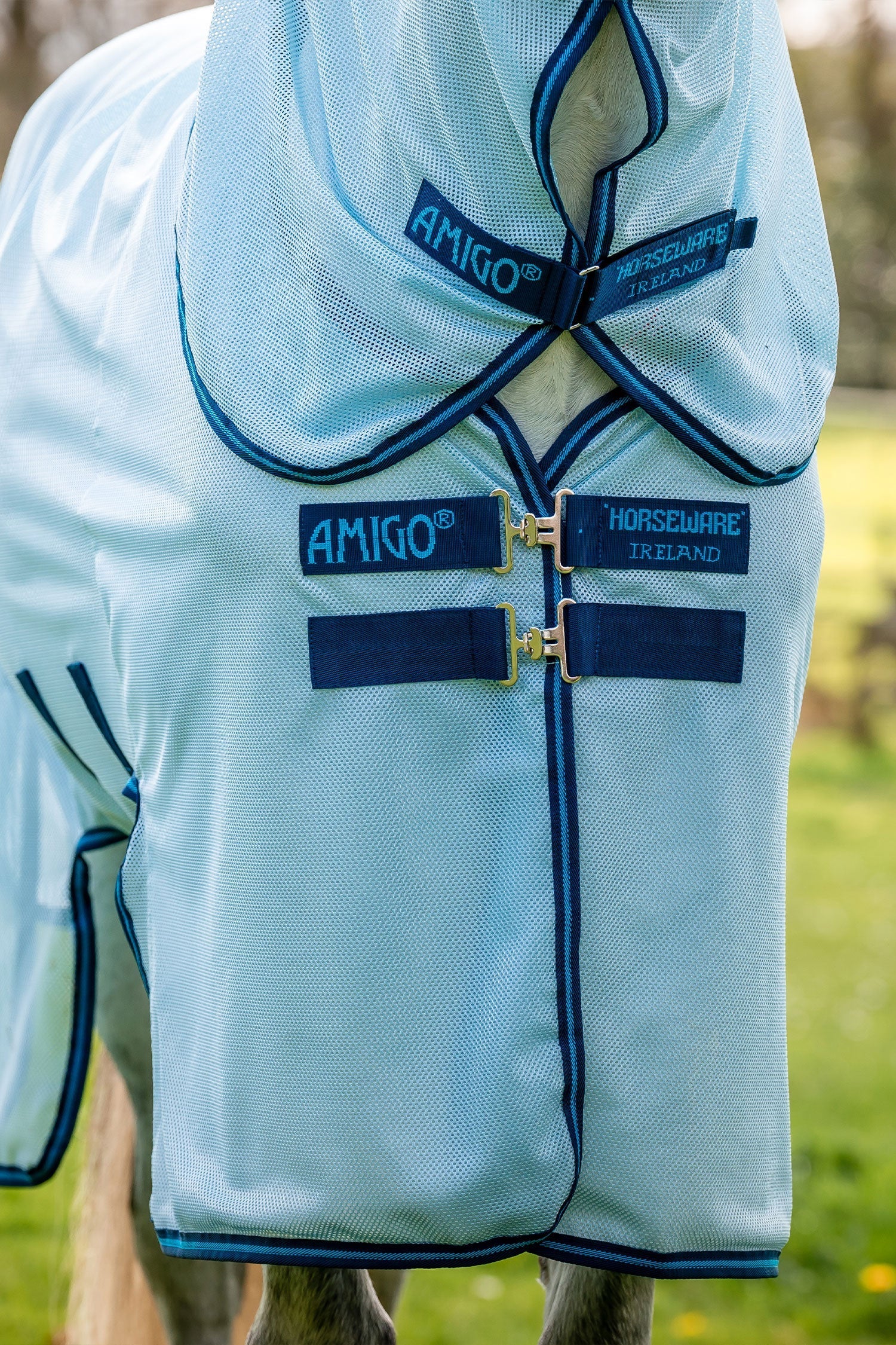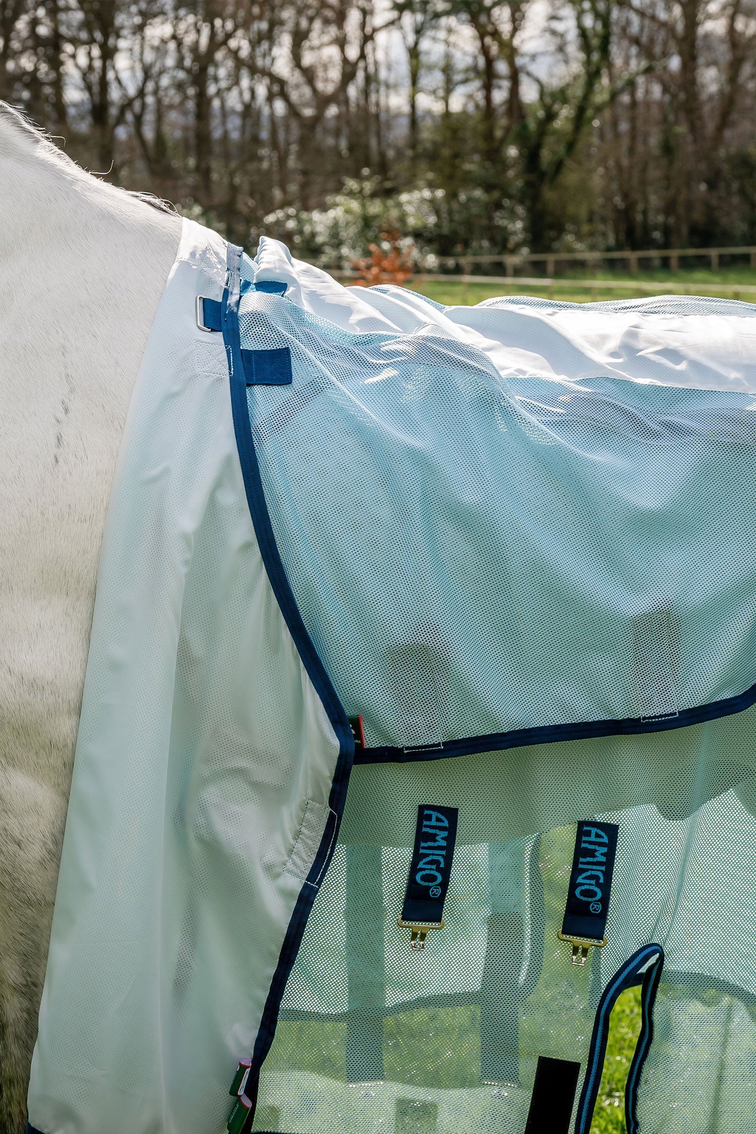 Skydda din häst från sommarens plågsamma insekter med Horseware Amigo Bug Buster – ett högkvalitativt flugtäcke med avtagbar halsdel, designat för att ge full täckning och komfort under varma dagar. Täcket är tillverkat av ett slitstarkt, lättviktigt och andningsbart nätmaterial som håller insekter borta samtidigt som det släpper igenom luft för att förhindra överhettning.