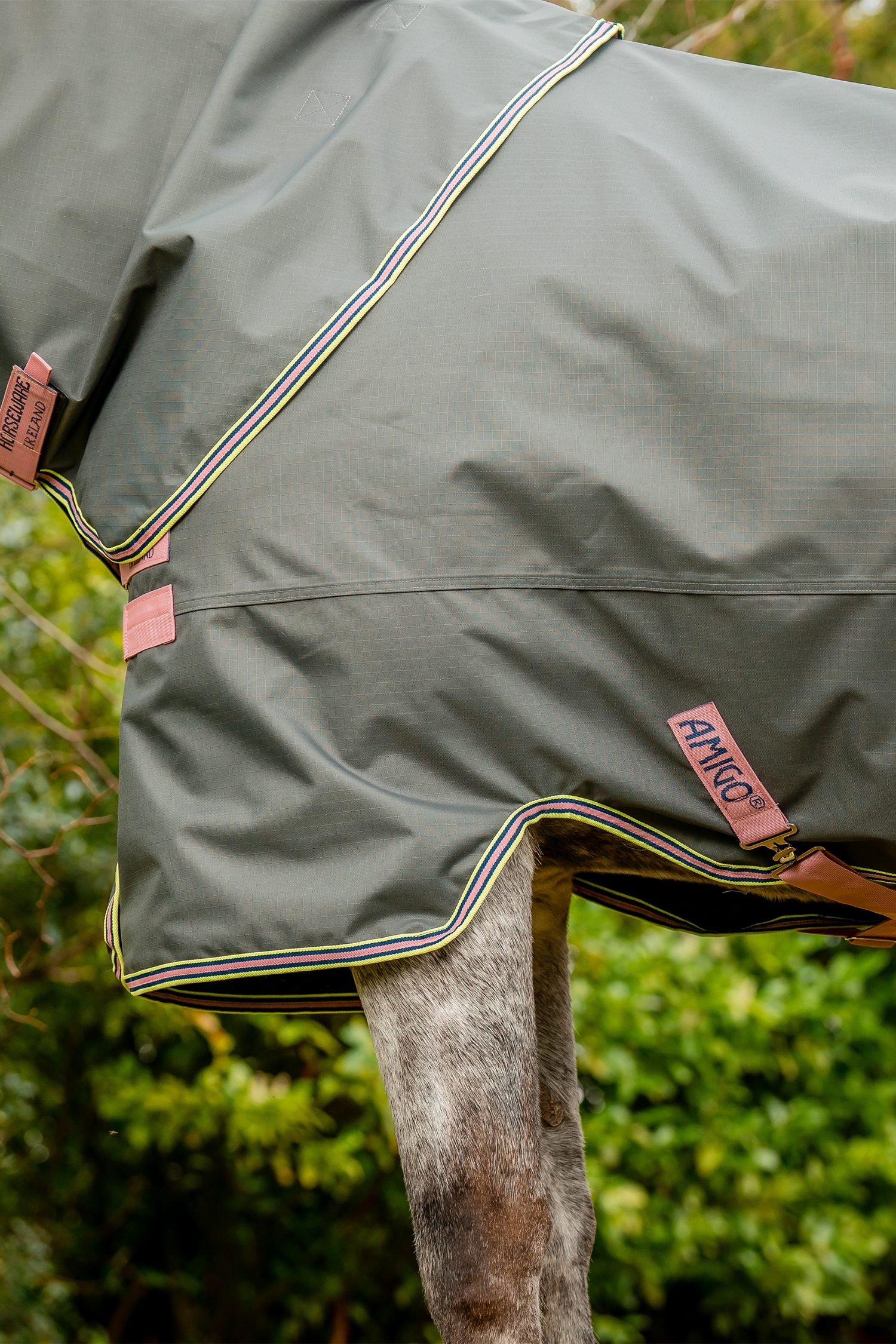 Storsäljaren Amigo Hero är ett väldigt omtyckt regntäcke (0g foder) med ett lättare yttermaterial i 600D. Amigo Hero 600 denier från Horseware är ett tufft, andningsbart och vattentätt yttermaterial av polyester.