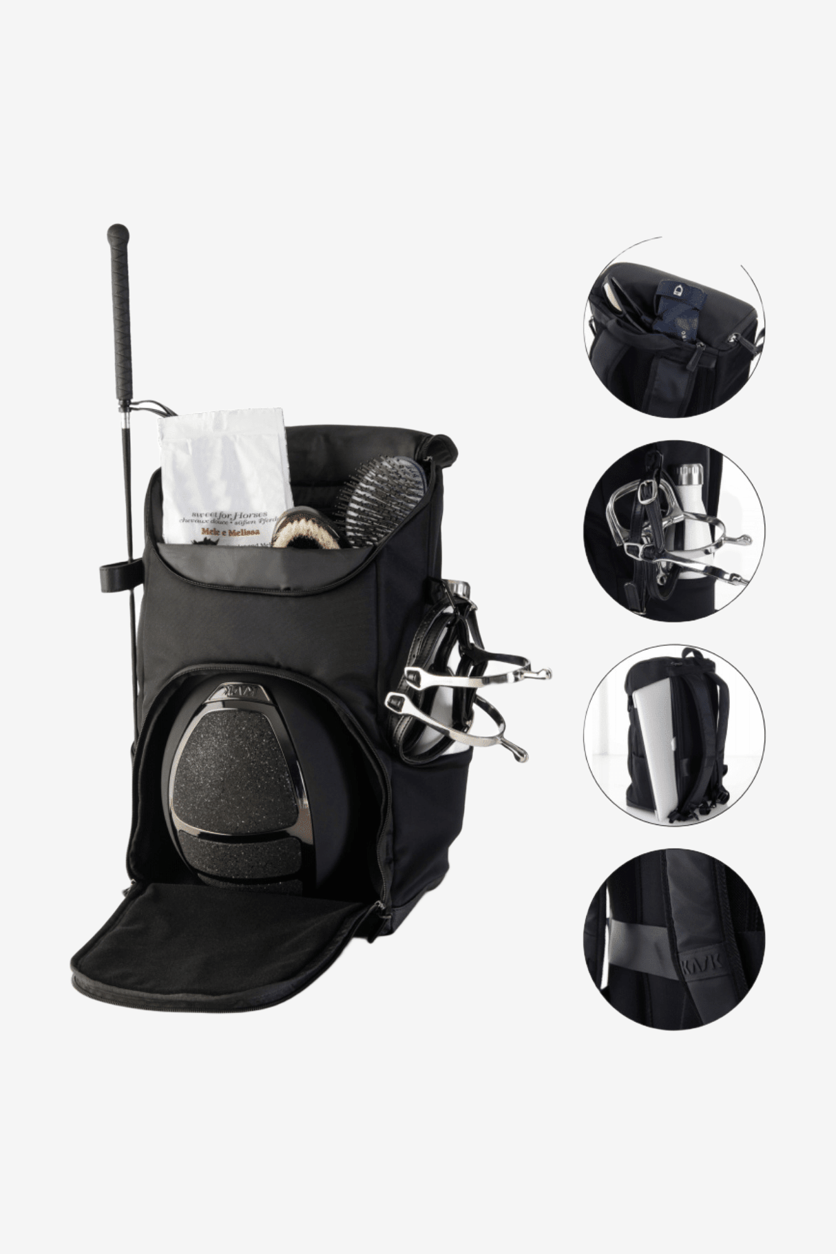 På grund av sitt enkla men eleganta utseende är ryggsäcken den perfekta följeslagaren för träningen eller på tävlingen.