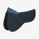 Extra tunn och uppskuren vid manken för att minimera risken för tryck. Här har man valt att använda konstläder för att hålla nere tjockleken. Ett silikonmönster på ovansidan förhindrar att padden glider under sadeln.