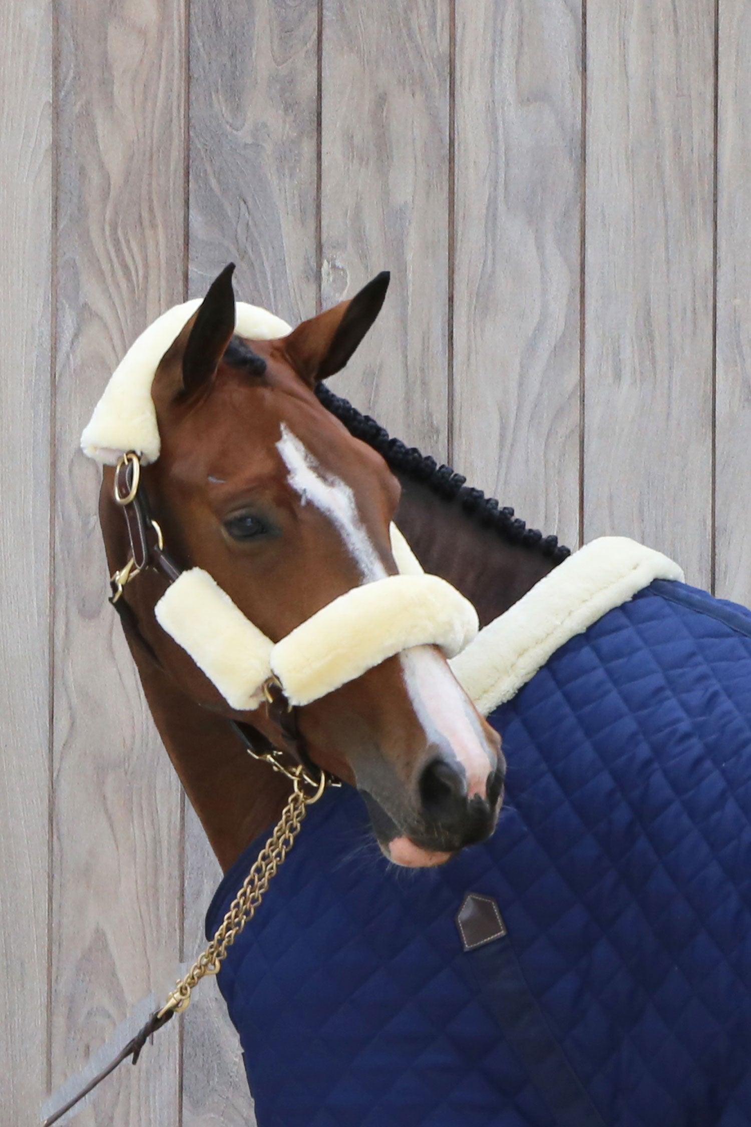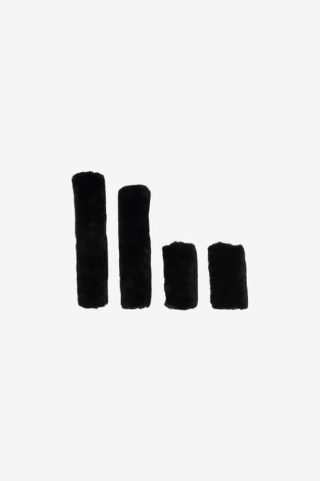 Mjukt fårskinn i set av 4 att fästa på ex. nosgrimman, nackstycket eller sidostyckena för att hindra skav och irritation från hästens utrustning.
