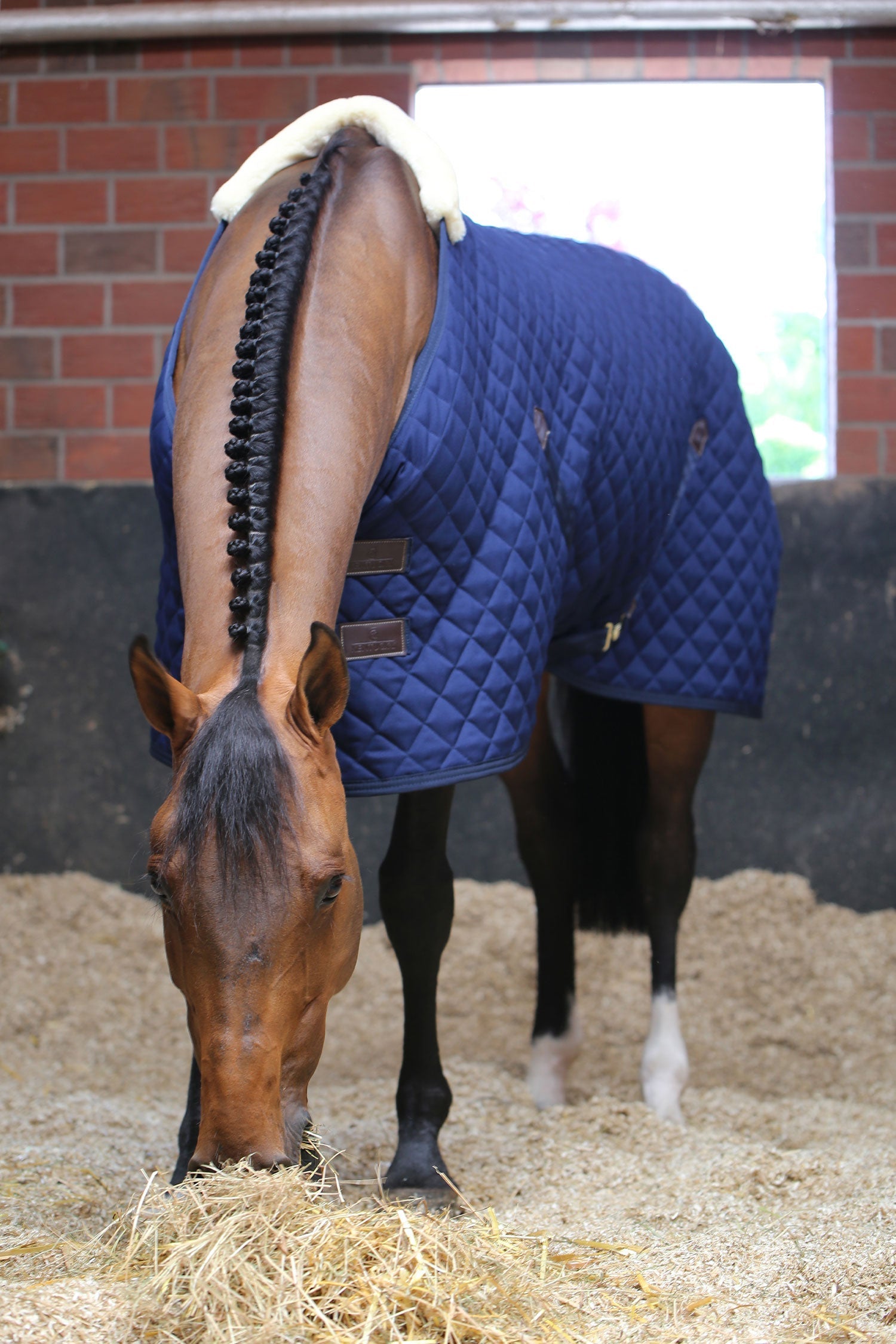 Yttertyget med sitt quiltade mönster gör det mycket svårare för hästen att bita tag i tyget och riva upp det. Det förhindrar också att spånrester fastnar på täcket.
