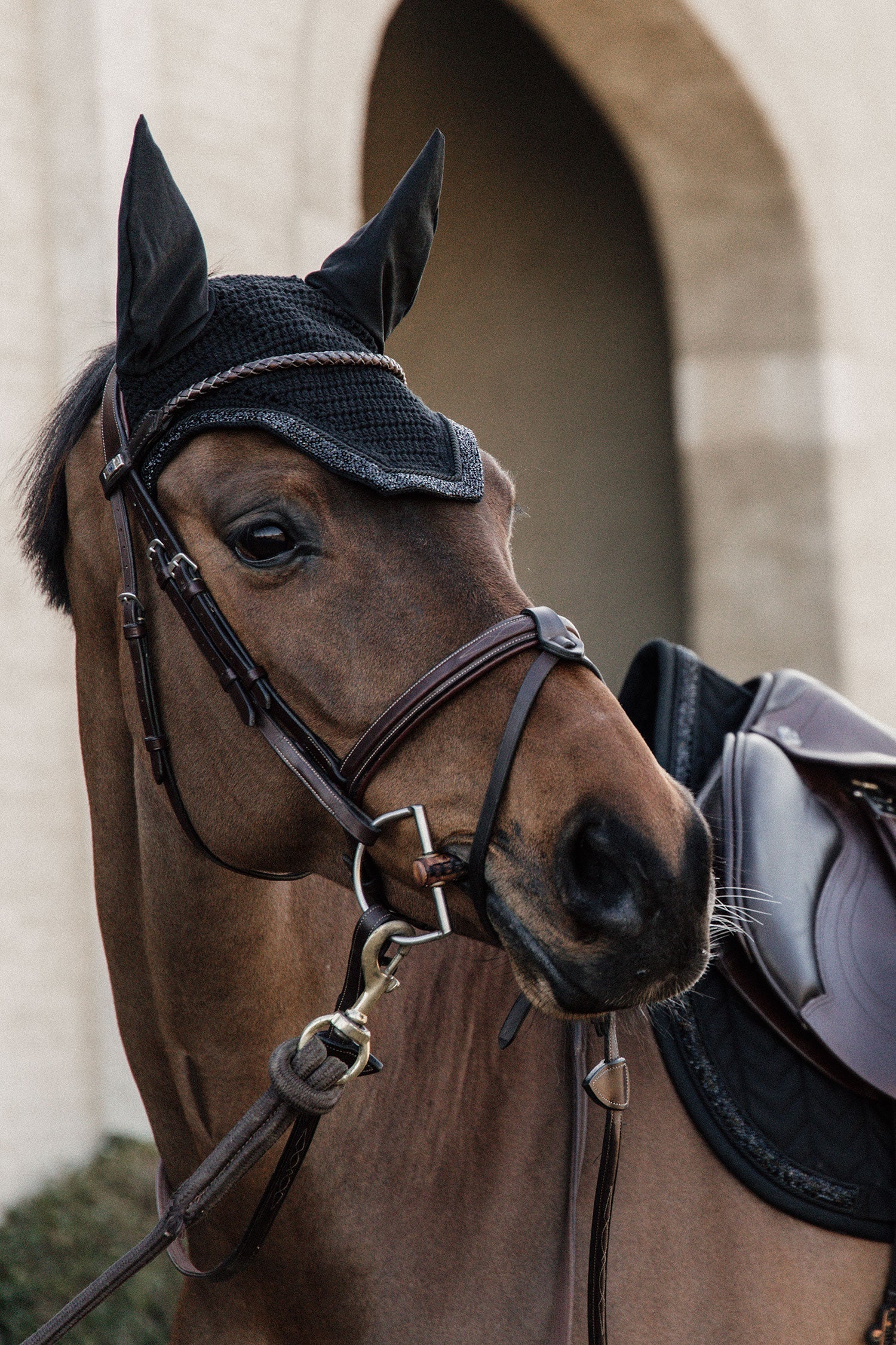 - Flugskydd mot irriterande insekter vid hästens öron.