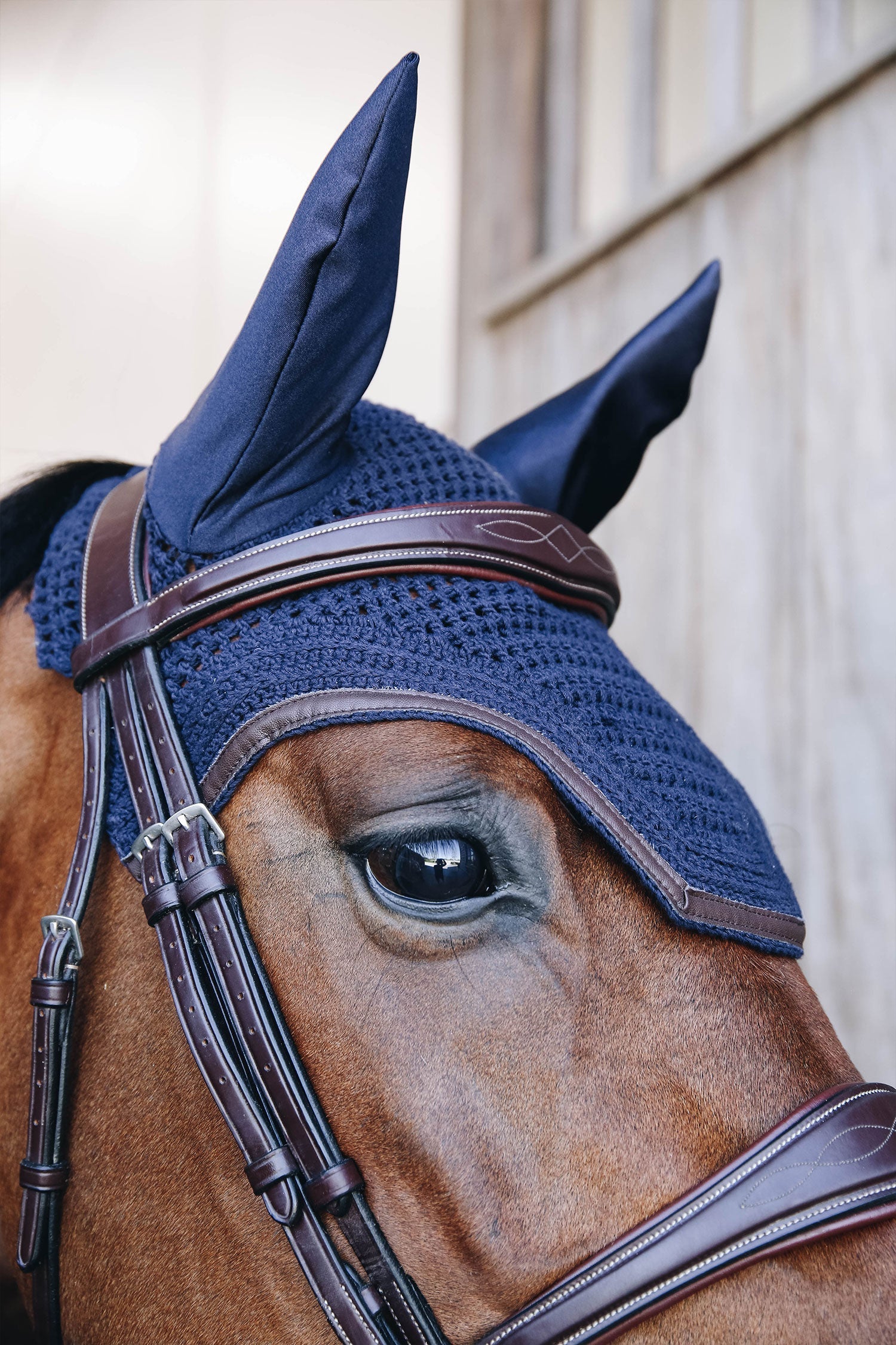 - Flugskydd mot irriterande insekter vid hästens öron.