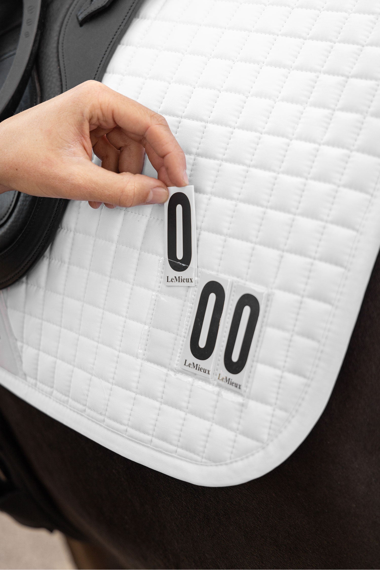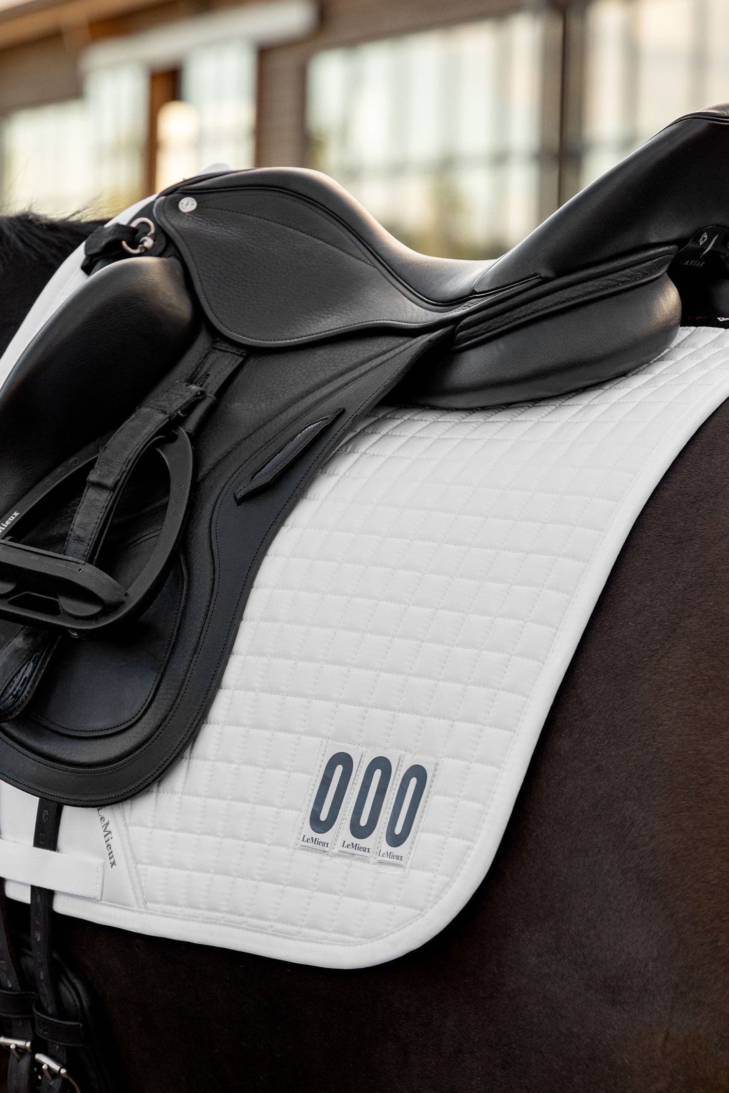 Schabraket levereras med tre kompletta uppsättningar av nummer för varje sida. Fickor finns på båda sidorna av kvadraten för att uppfylla de nya kraven från British Dressage. Designad för den aktiva hästen, erbjuder stil, hållbarhet och maximal prestanda.