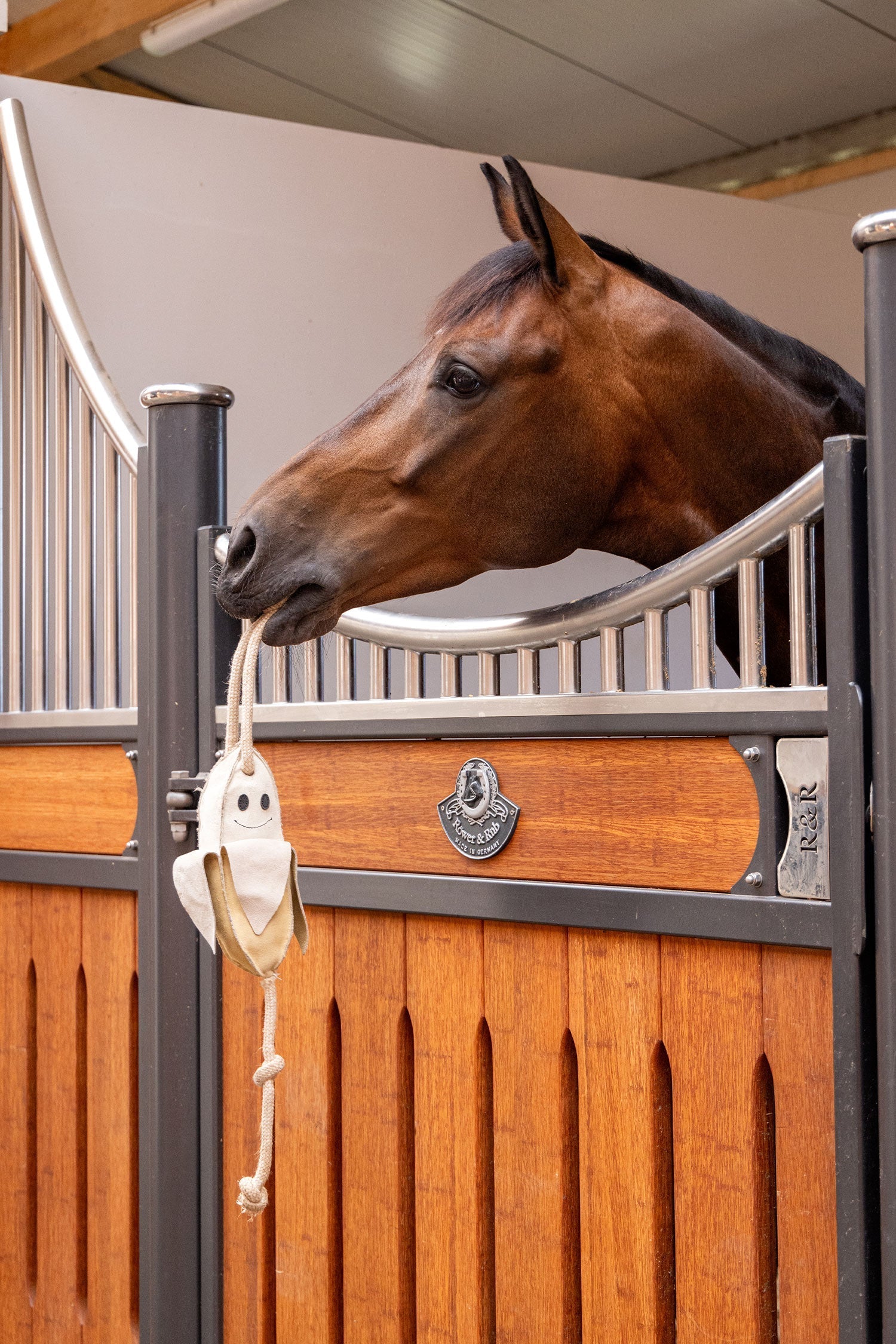 Med en slitstark utsida i mocka kommer den med ett rep genom bananen för extra lekmöjlighet, vilket förhindrar att din häst blir uttråkad.