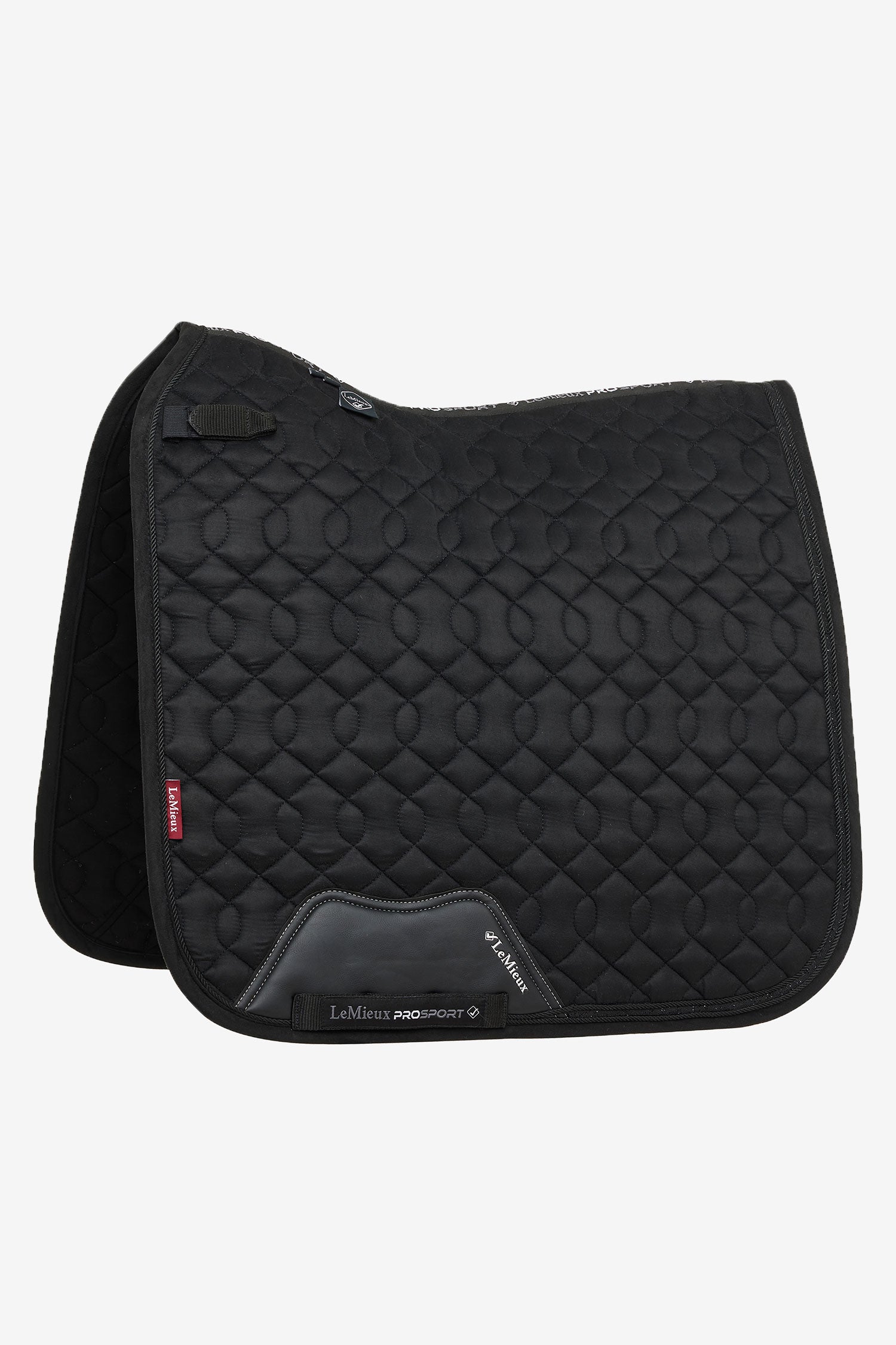 Runt sadelgjorden sitter det ett PU material för att undvika skav mot tyget. Dressage schabraken är skurna för att passa ett brett utbud av marknadens olika dressyrsadlar.