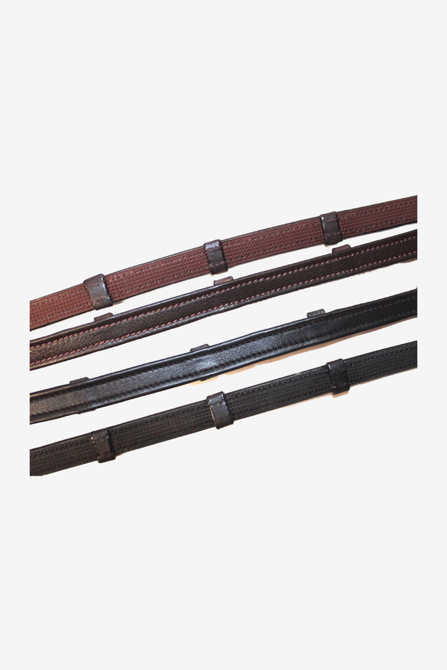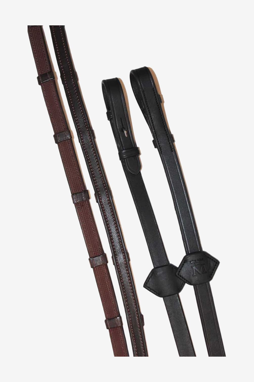 Huntertygel, tillverkat av vegetabiliskt garvat läder i högsta kvalité, med stoppar och gummi på tygelns insida. Tygelns utsida är slät och helt i läder. Tygelns utformning gör att den mjuk och smidig samtidigt som ryttaren får ett mycket bra grepp. Tygeln har spänne med hake för fäste i bettring. Stopparna sitter tätt med 5,5 cm mellanrum.