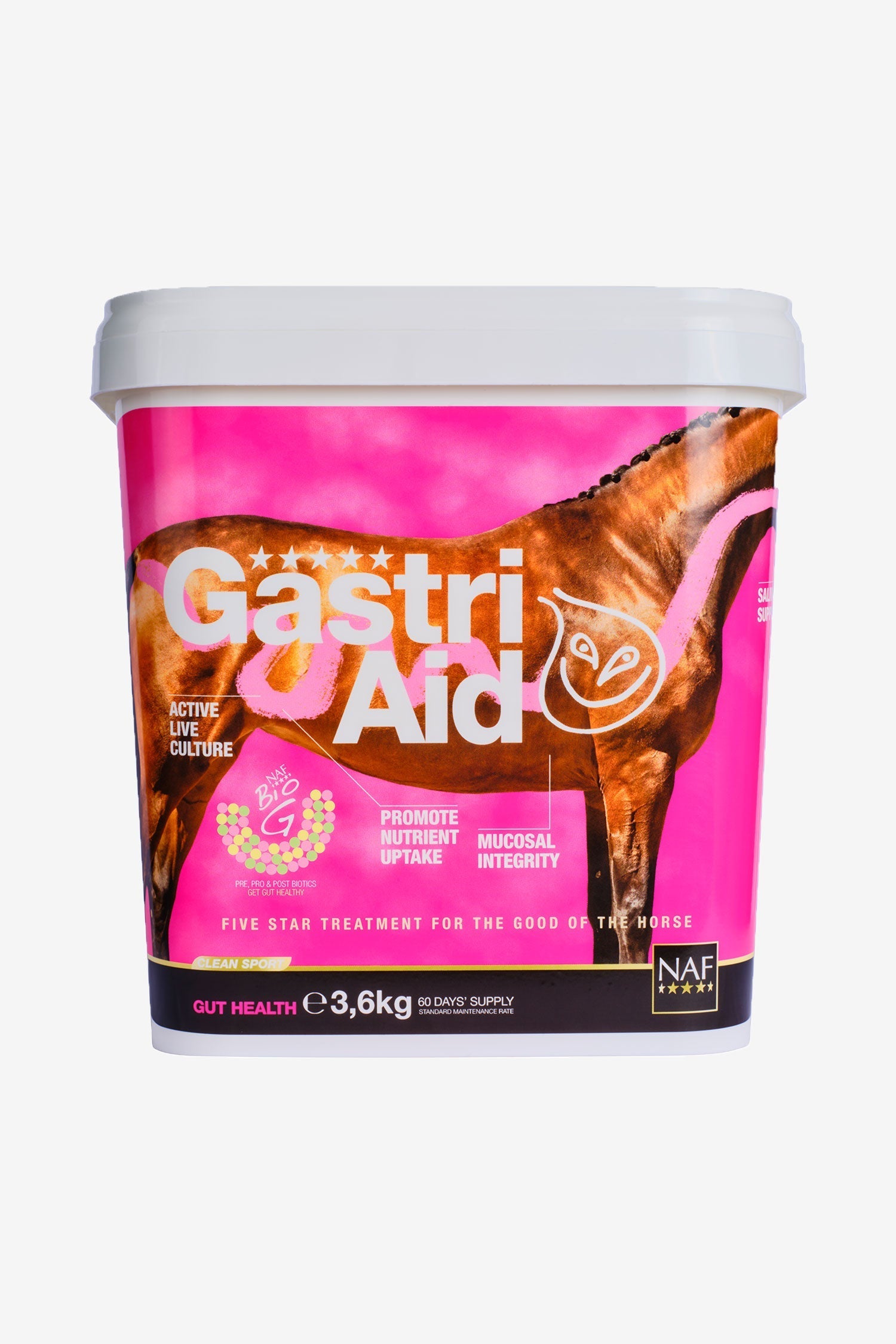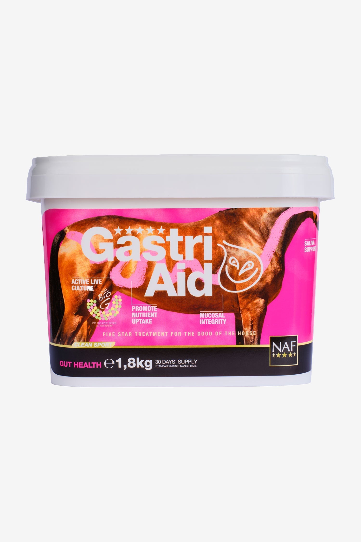 GastriAid främjar funktion och styrka längs med hela magtarmkanalen för att optimera den totala magtarmhälsan, matsmältningen och för allmänt välmående. NAF GastriAid börjar sitt arbete genom att ge stöd för saliven, innan den frigör naturliga buffertar för att balansera pH. Den ger stöd för tunntarmsväggens styrka och elasticitet, vilket i sin tur ger direkta fördelar för näringsupptaget. Via levande jästkulturer och kraftfull biotika tillförs stöd och näring till tarmfloran och grovtarmen, för att understödja hästens viktiga fermentering av fiber. Välj GastriAid som ett totalt stöd för hela magtarmkanalen.