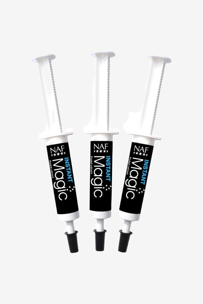 Instant Magic använder biotillgängligt magnesium kombinerat med en snabbverkande örtbas som ger omedelbar, lugnande effekt. Instant Magic rekommenderas till hästar som kortsiktigt behöver ett omedelbart lugnande medel inför potentiellt stressande situationer. Detta kan omfatta t ex: tävling, klippning, resande eller ett besök av hovslagare eller tandläkare. Instant Magic kan även användas för att utöka den lugnande effekten av dagligen utfodrat tillskott av Magic pulver/flytande, när det behövs. OBS: NAF är nöjda med att kunna bekräfta att Instant Magic inte strider mot FEIs regler och STCs regler och är säkert att använda till alla hästar i samband med tävling.