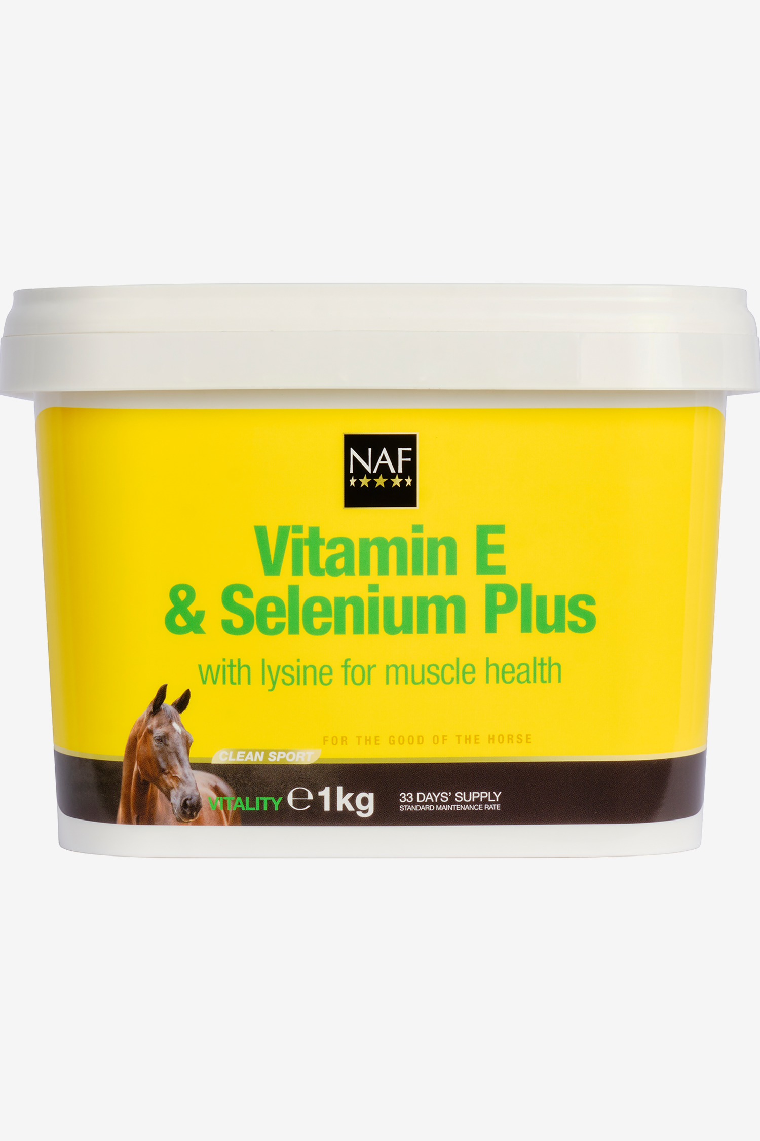 För underhåll av muskelfunktion och styrka. även för att stödja fertilitet vid avel. Rekommenderas särskilt i områden där selenhalten i marken är låg.