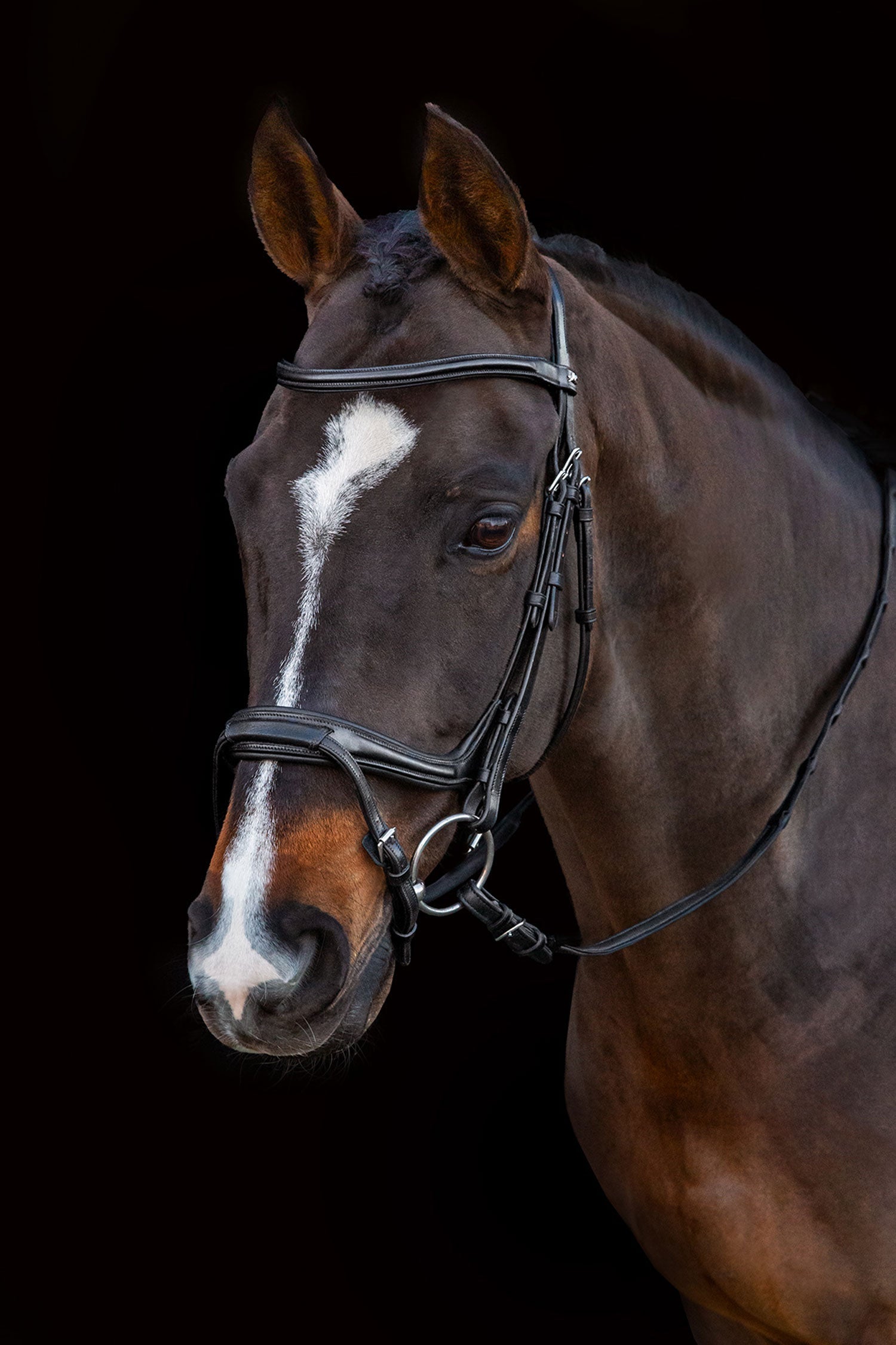 Schockemöhles innovativa träns "Ancona Select" med sin nya anatomiska nosgrimma, som passar perfekt runt hästens kindben.