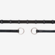 De dubbla läderstopparna på de breda vävribbstyglarna med ring säkerställer att tyglarnas längd enkelt kan ändras och underhållas av ryttaren. Den robusta ringen i änden är ett bra alternativ till den traditionella läderöglan i kombination med ett spänne.