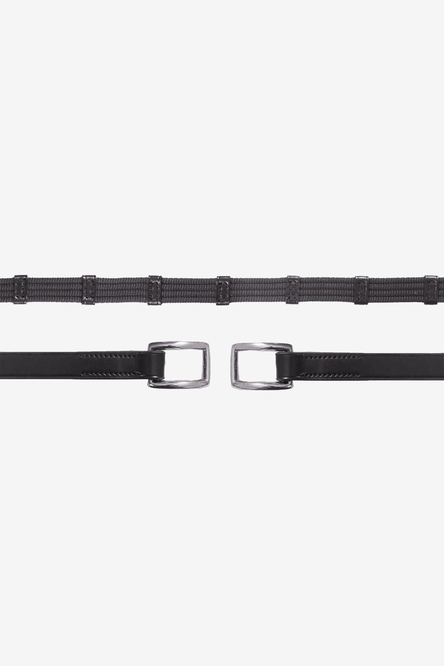 Web Reins Warendorf är gjorda av ett 19 mm brett material med dubbla läderstoppar för bättre grepp i förarens hand. Den rektangulära Warendorf-snäckan är ett bra alternativ till traditionella spännen. Det gör hanteringen enkel och tygelstopp blir överflödiga.