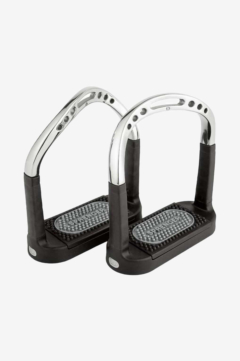 Likt Sprengers tidigare stigbyglar är bågen vinklad, vilket hjälper ryttaren att hitta rätt skänkelposition. Tyngden på stigbygeln ligger nedåt, då bågarna är lätta och tyngden ligger i själva plattan. Detta gör att om du råkar tappa din stigbygel håller den sig stabil och nedåt, vilket underlättar för dig att fånga den i farten igen.