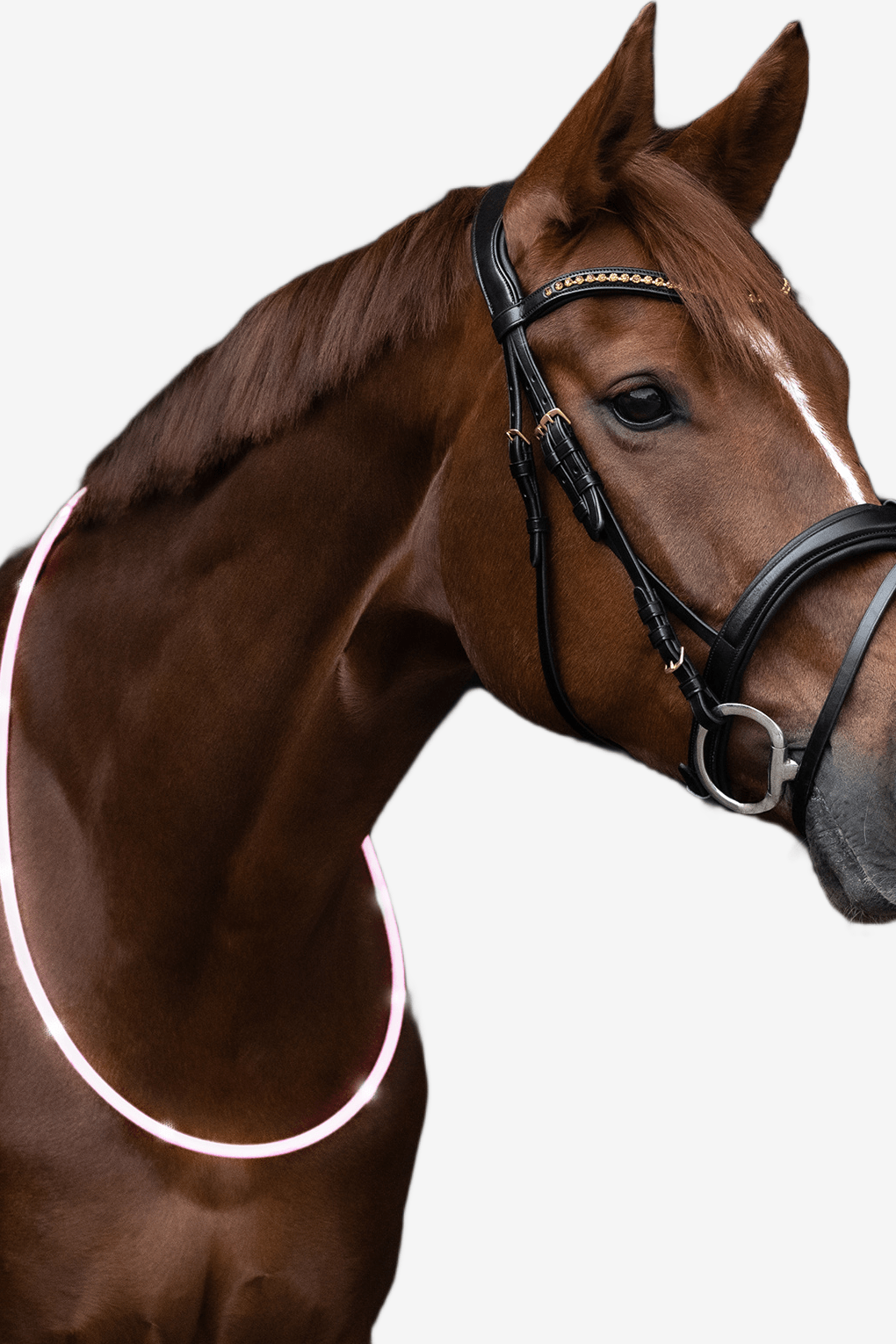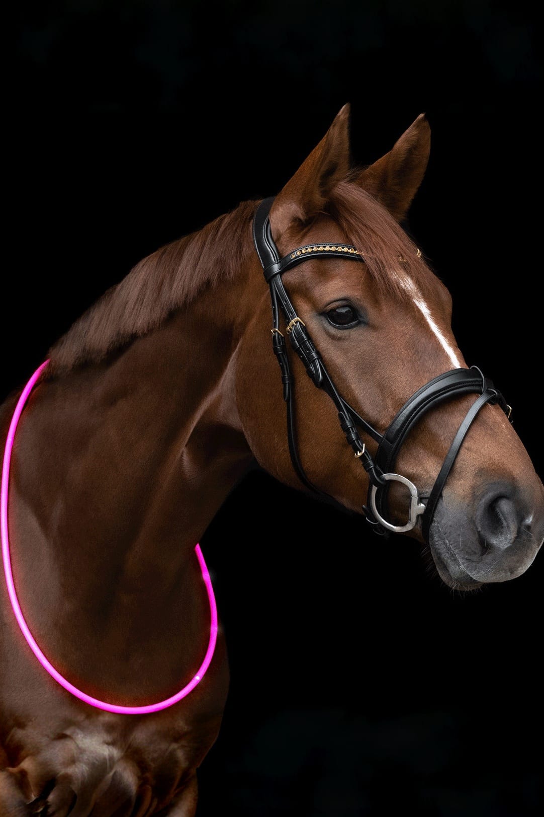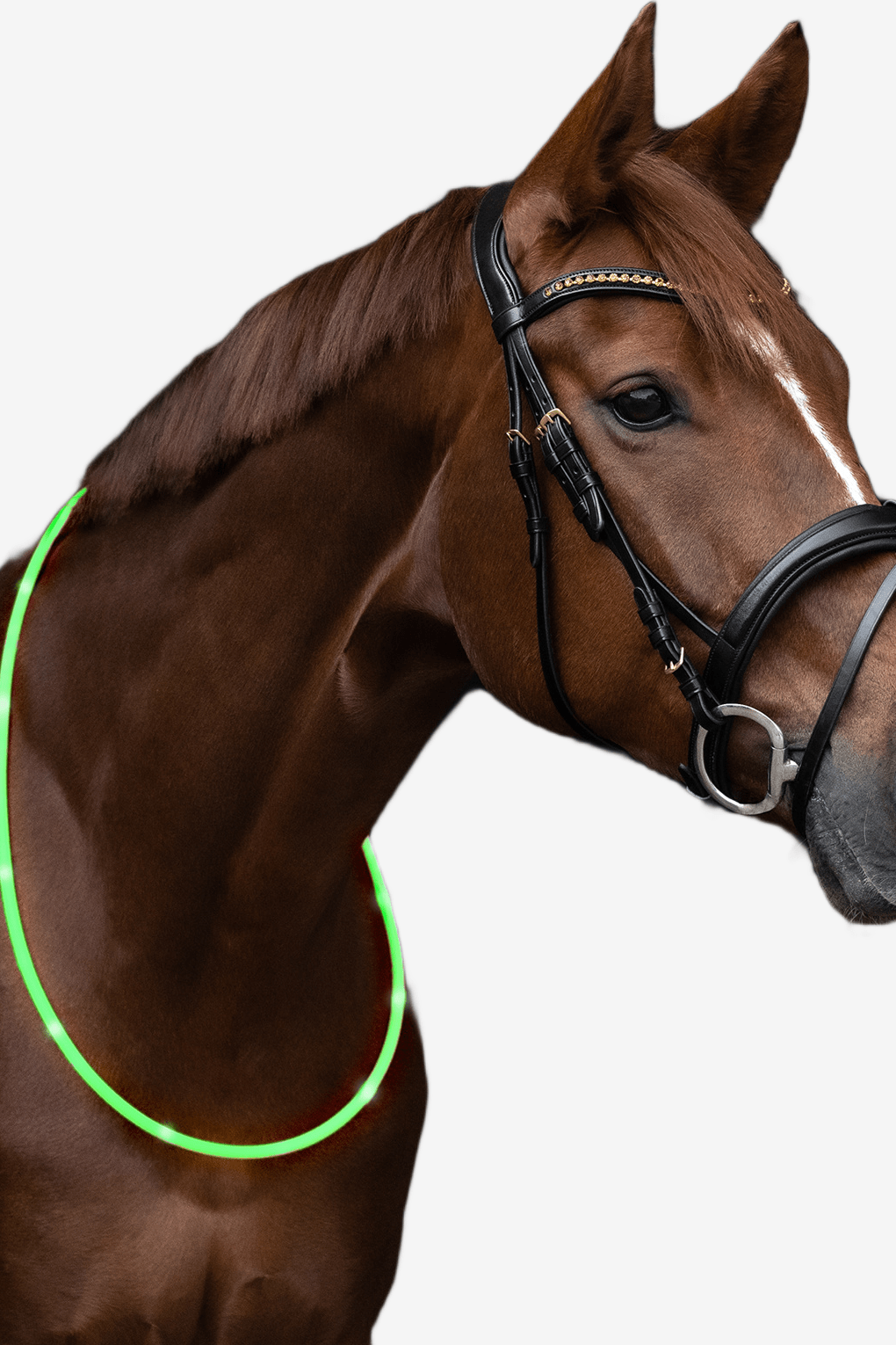 Med denna lysande nackrem kan du rida säkert med din häst i mörker och dimma. Tack vare en varaktighet på upp till 2 timmar förblir din häst väl synlig hela tiden även vid längre uteritter. För att nackremmen ska passa perfekt till din fyrbenta vän kan du helt enkelt klippa i silikonen till rätt storlek. För ljuseffekten kan du välja mellan två blinklägen och ett kontinuerligt ljus.